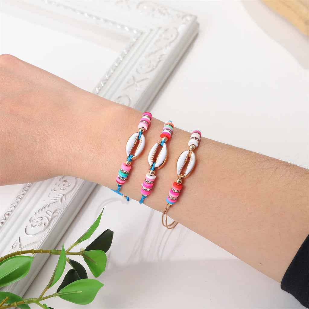 These cute bracelets are perfect for kids to wear at parties or on the beach. The iridescent shell beads add a fun touch to any outfit.