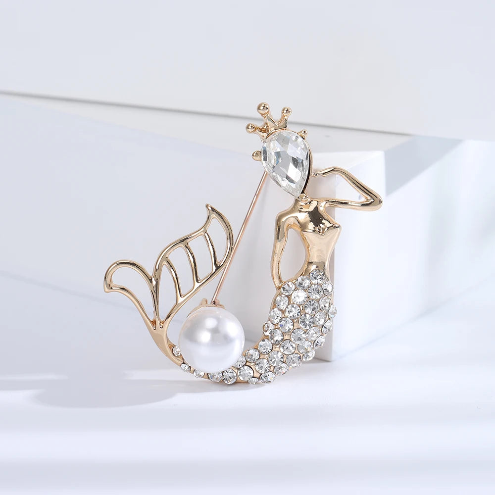 Beaut&Berry Rhinestone Pearl Mermaid Lady Brooch Wedding Party Gift Pin