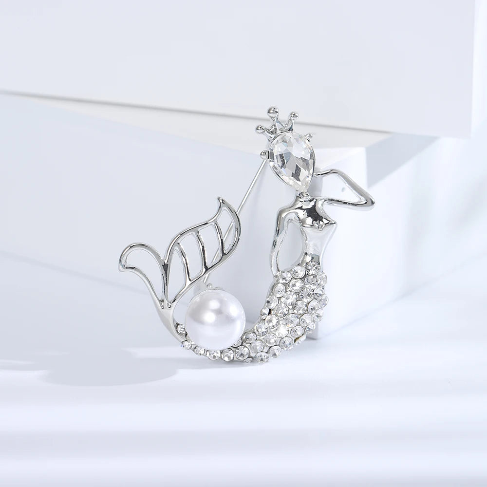 Add a touch of elegance to your outfit with this stunning rhinestone pearl mermaid brooch. Perfect for weddings, parties, or as a thoughtful gift.