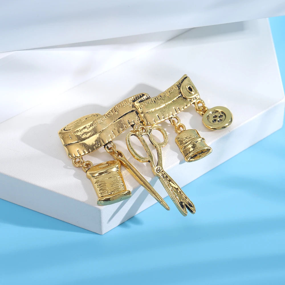 This elegant brooch features tailor tools design, perfect for office or festive party wear. It makes a great gift for ladies.