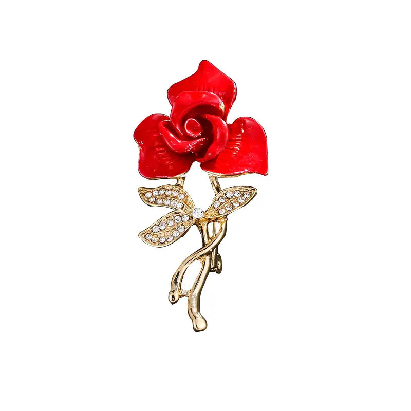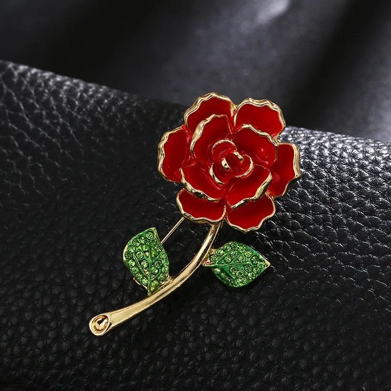 Elegant and exquisite red rose lapel pin adorned with rhinestones, a perfect accessory to elevate your attire. This enamel pin brooch is a stunning jewelri piece for women to enhance their style.