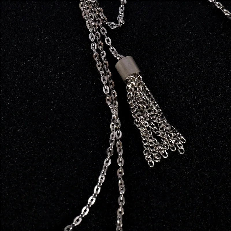 This chain brooch is a perfect accessory for retro punk band singers. Add a touch of glam to your show ensemble.