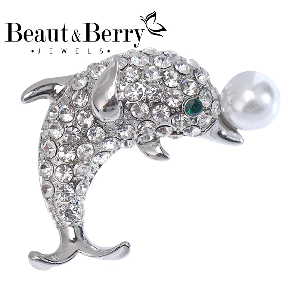 - Elegant rhinestone dolphin brooch