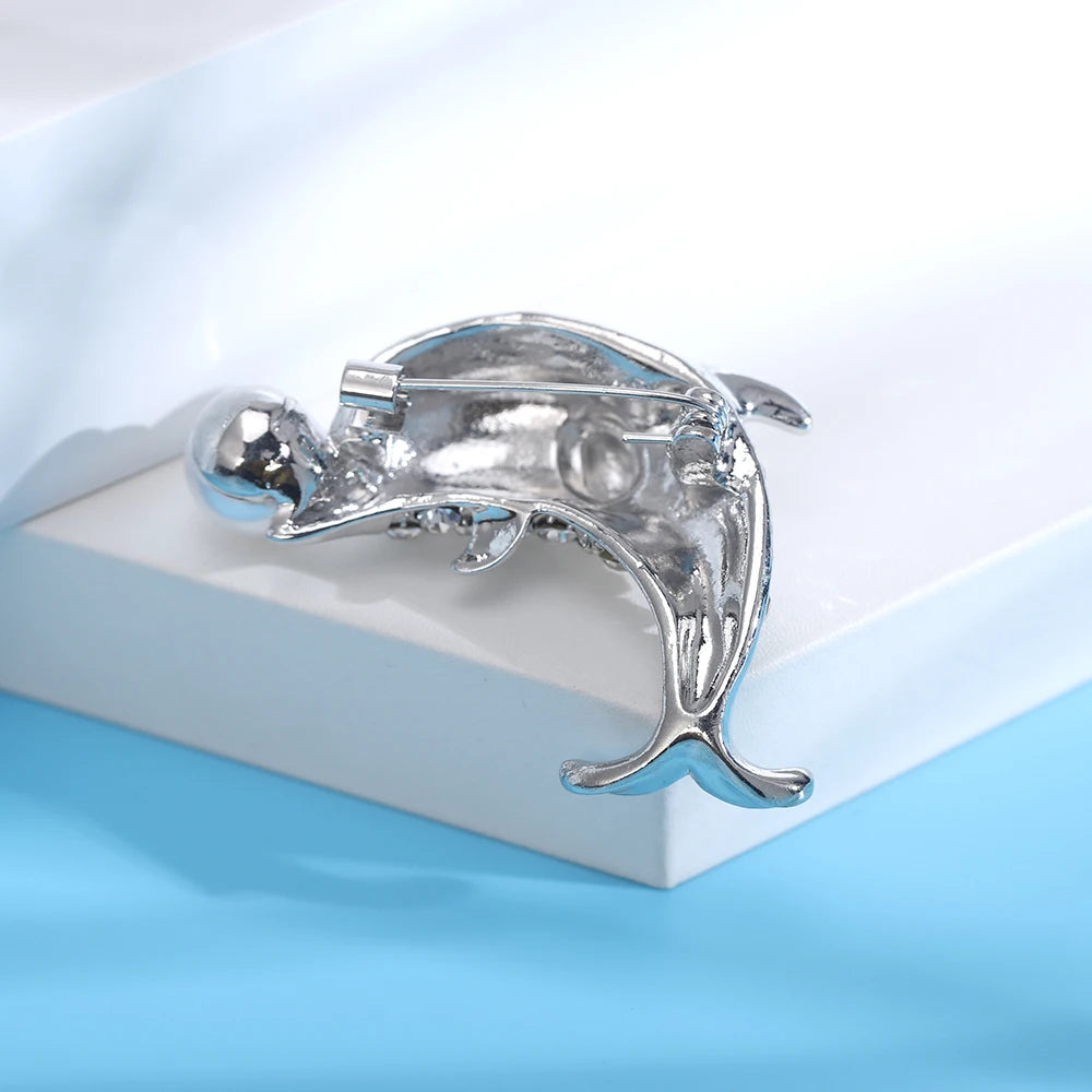 This elegant rhinestone dolphin brooch is a perfect accessory for weddings, parties, or office wear. It makes a great gift for any occasion.