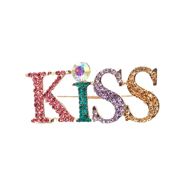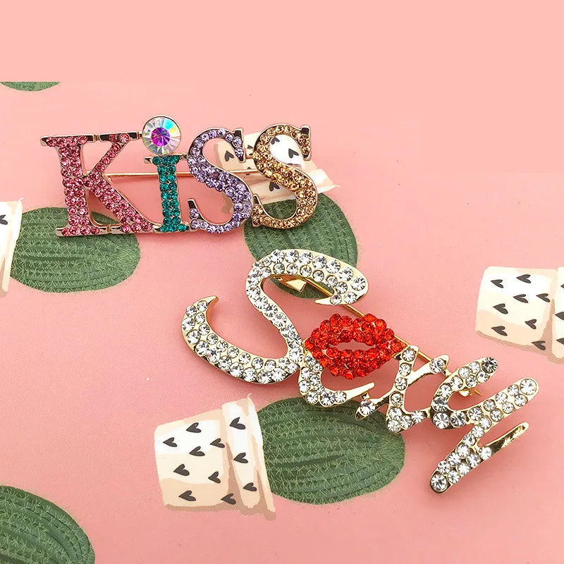 Sexy Kiss Rhinestone Brooch Crystal Jewelry Letter Pins Buckle