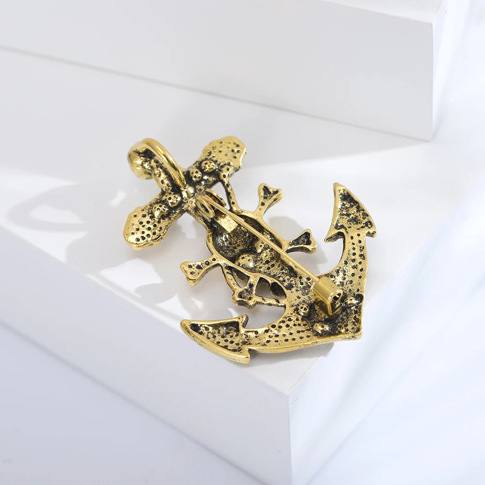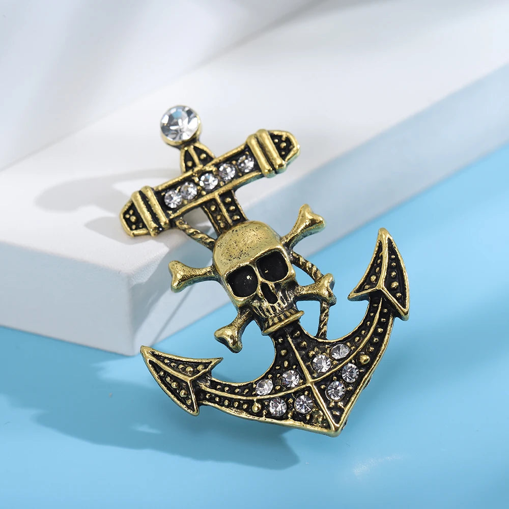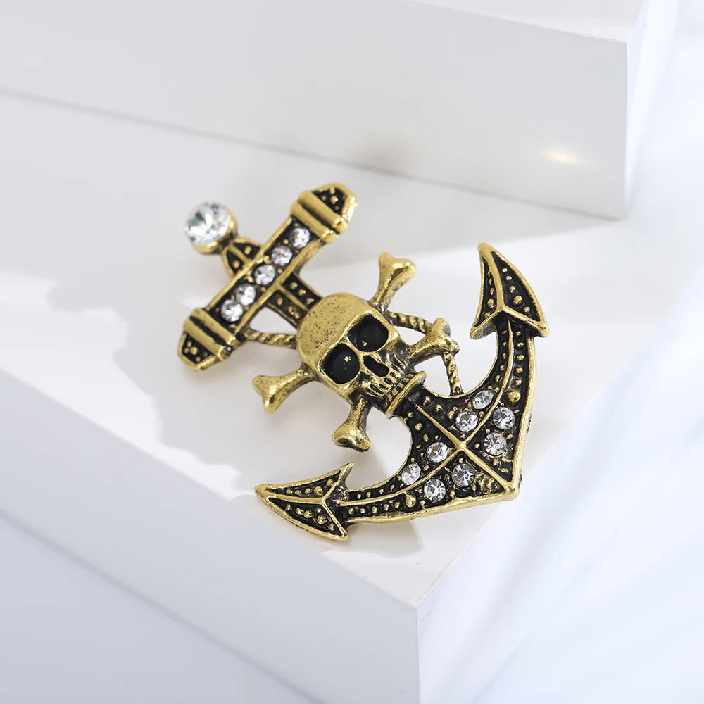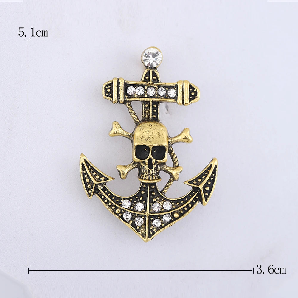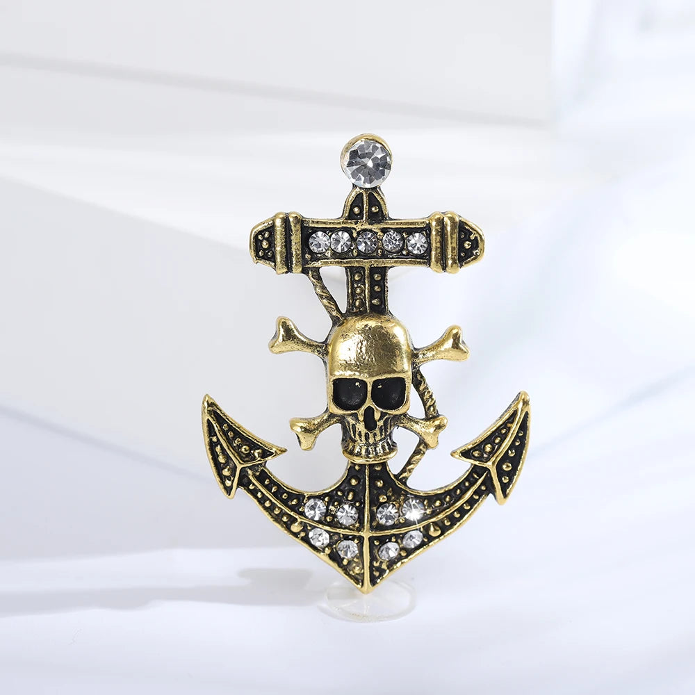 Add a touch of edgy style to your outfit with this skull boat anchor brooch. Perfect for office, weddings, or parties.