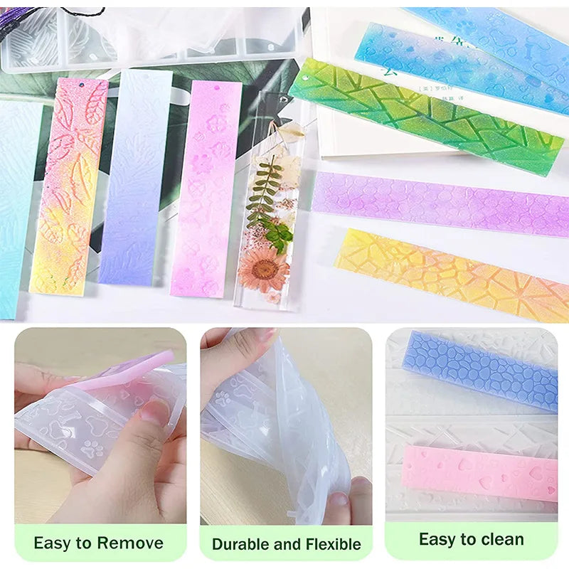 Create unique bookmarks with this silicone mold for resin casting. Perfect for DIY projects and jewelry making.