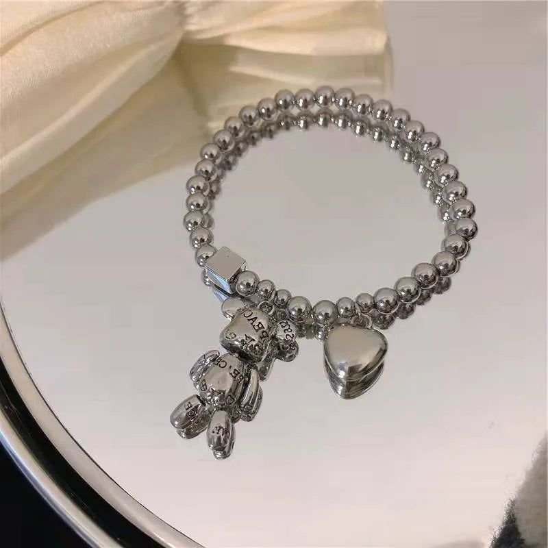 Add a touch of charm to your party outfit with this stylish stainless steel bracelet featuring a heart bear pendant. Perfect for everyday wear or special occasions.