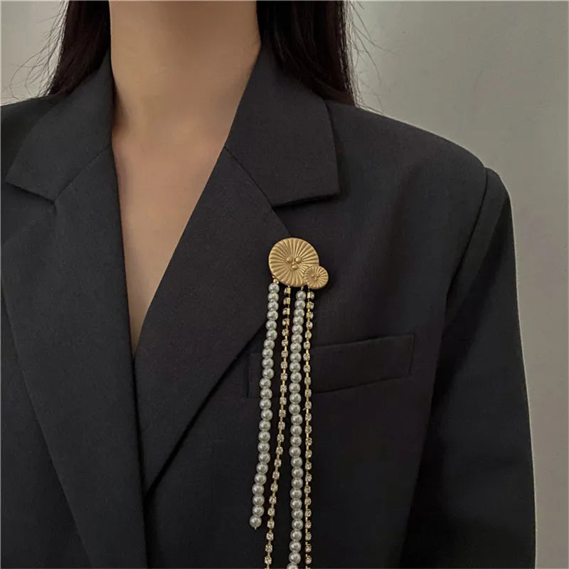 This senior retro brooch features a sunflower design with pearl tassels. Perfect for adding a touch of vintage sophistication to your outfit.