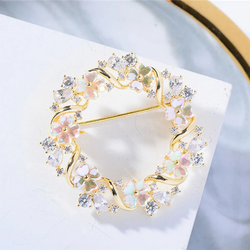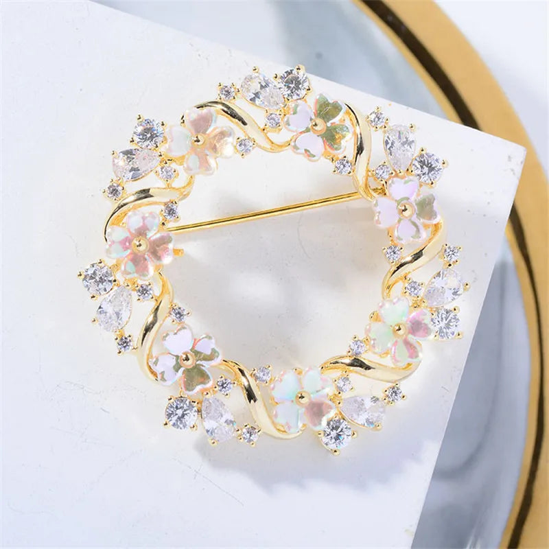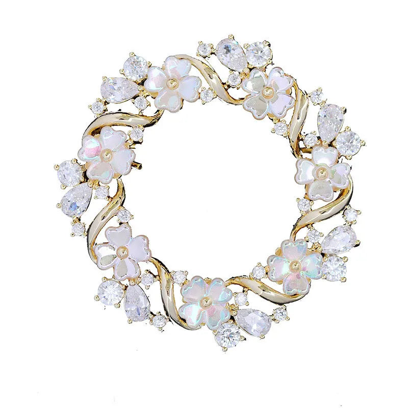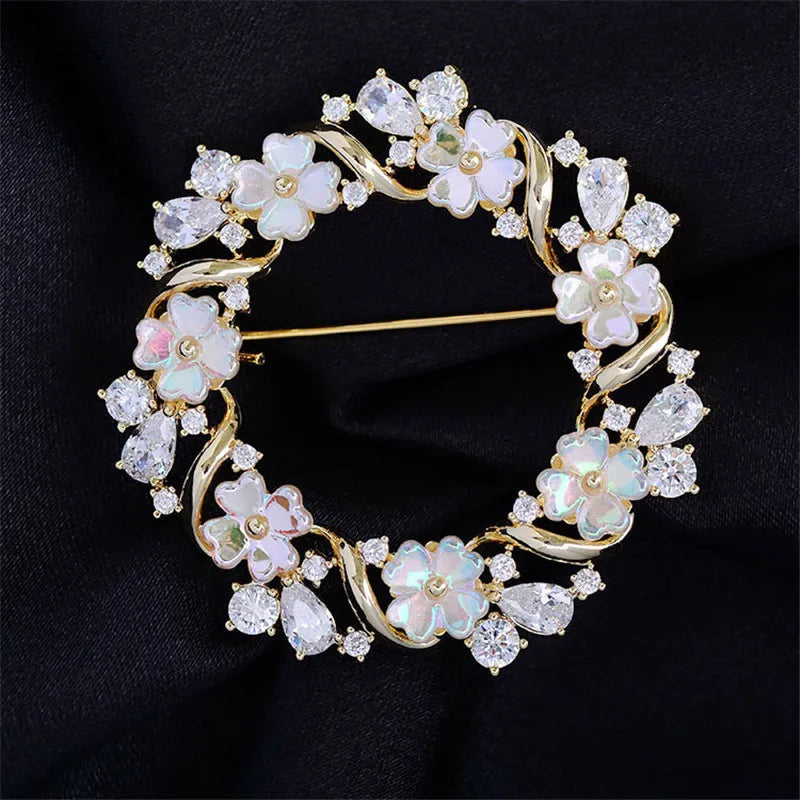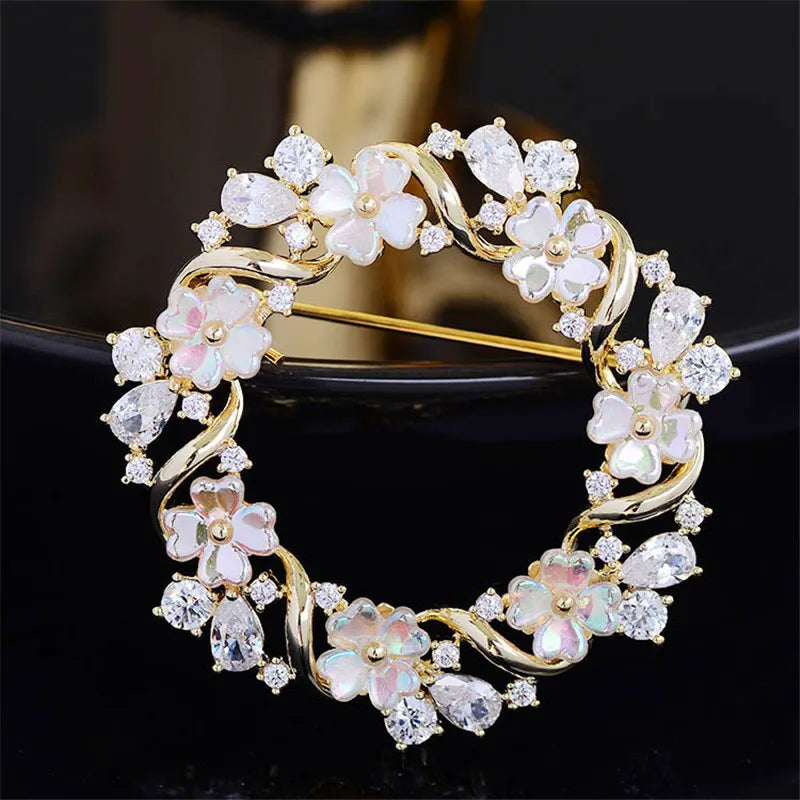 Elegant zircon brooch pin featuring a shell flower design, perfect for wedding wreats and bridal bouquets.