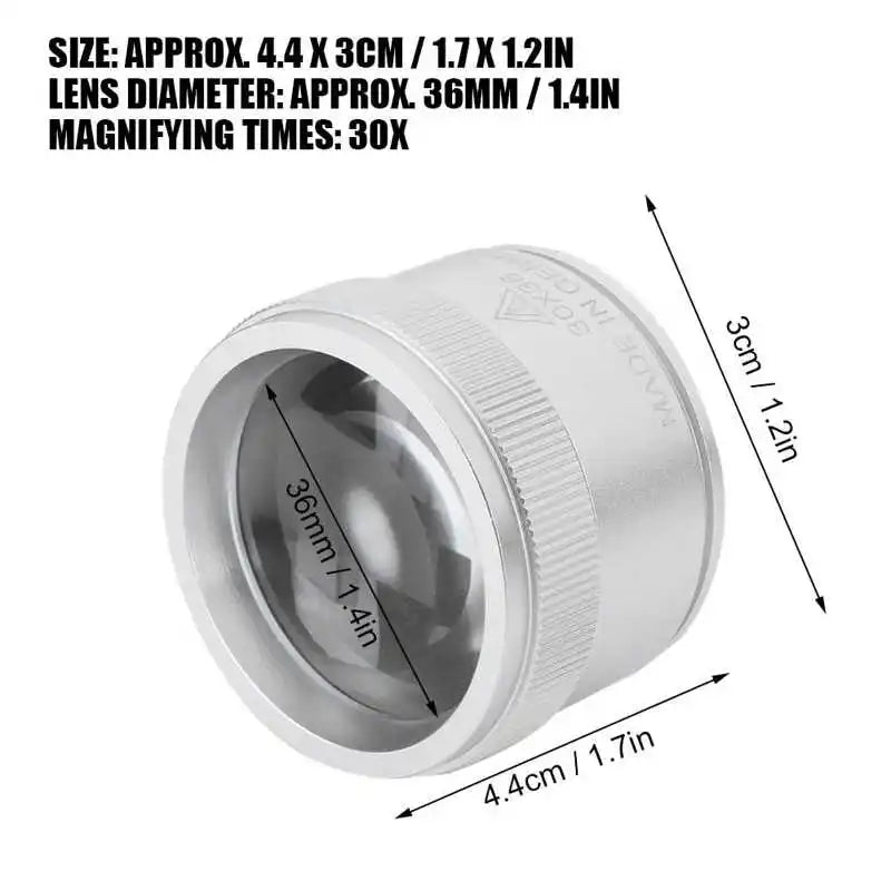 This handheld magnifying glass with 30X magnification is perfect for identifying jewelry, coins, and small details. It's a must-have tool for watchmakers and jewelry enthusiasts.
