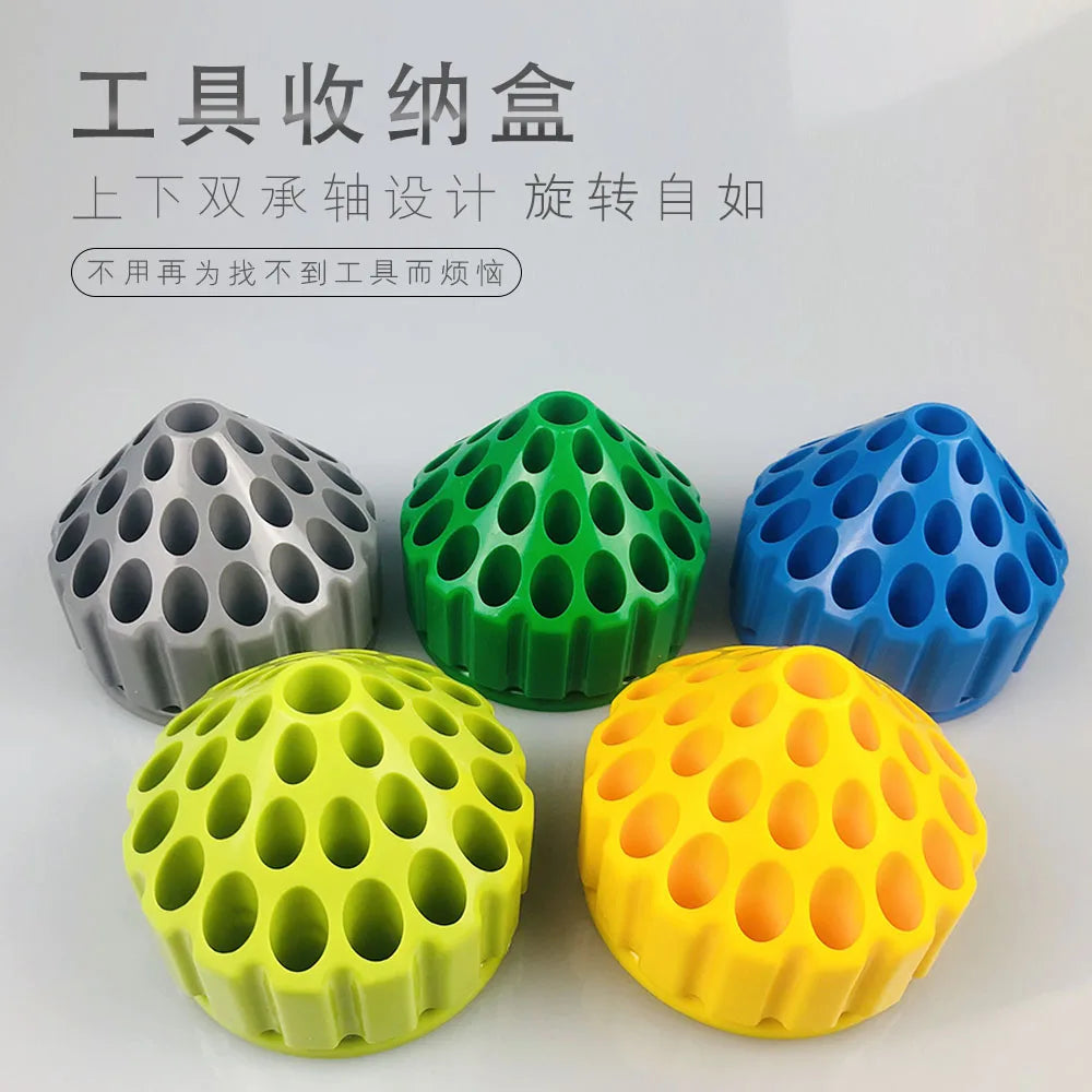 Organize and store your drill bit grinding heads, wire tapping parts, and jade carving tools in this convenient 360-degree rotating plastic storage box. Keep your tools easily accessible and neatly arranged.