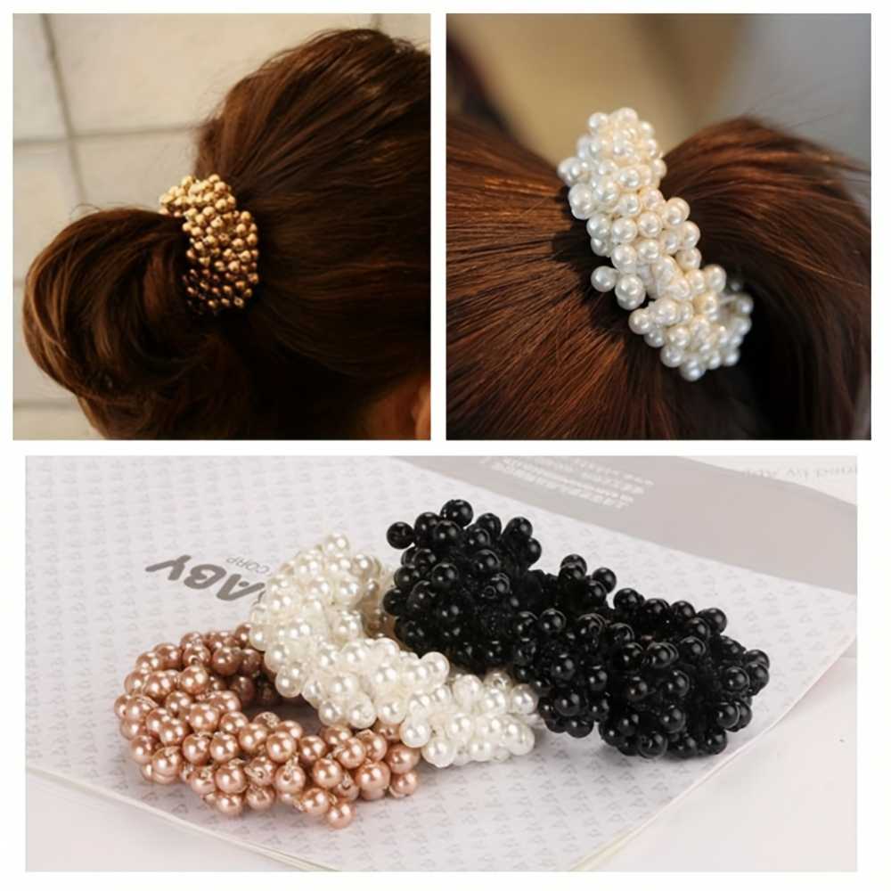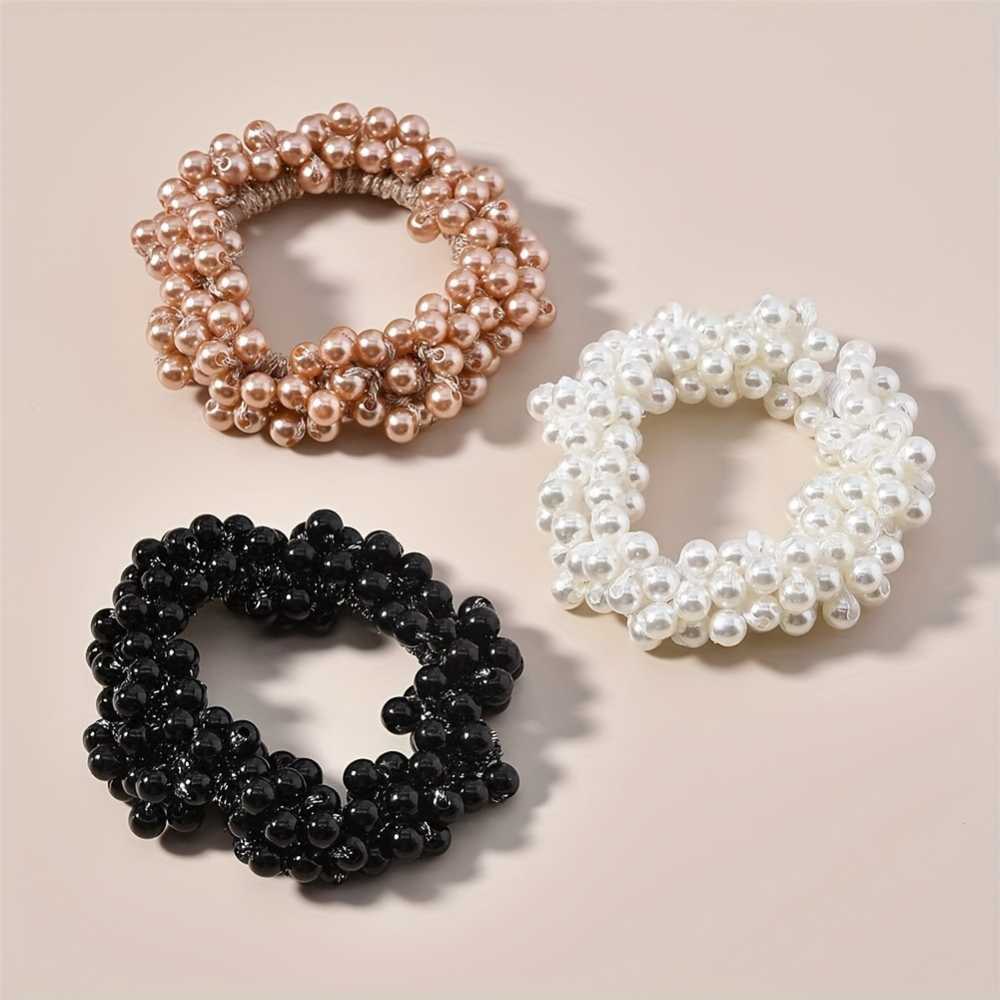 3pcs Elegant Faux Pearl Beaded Hair Ties Set Elastic Ponytail Holders