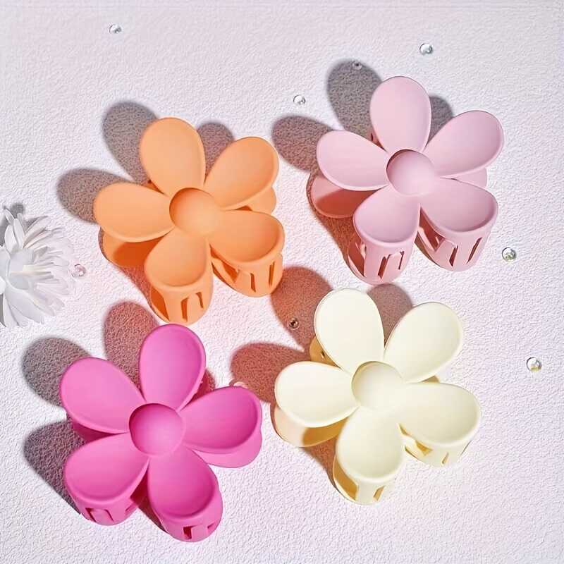 4pcs Set Matte Floral Hair Claw Clips Sweet & Simple Design