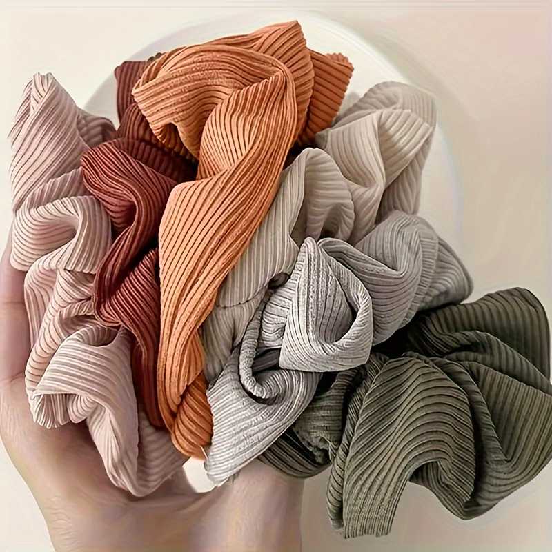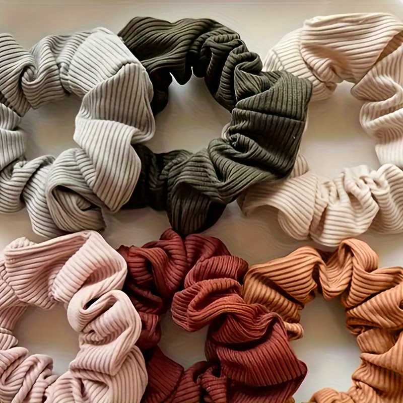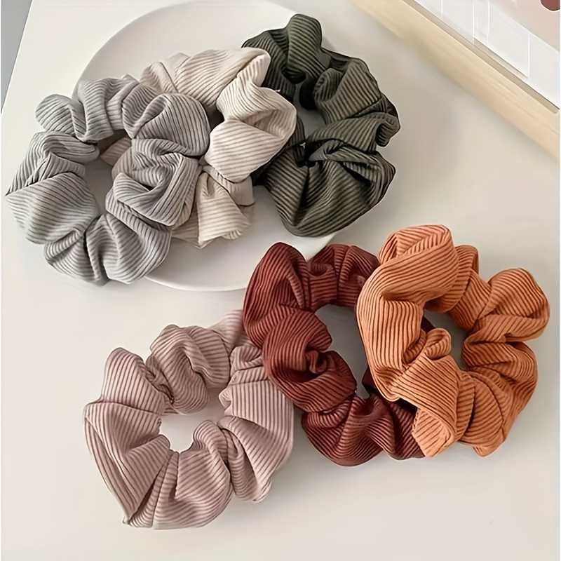 6 Pcs Soft and Cozy Solid Color Printing Knitted Scrunchies For Women