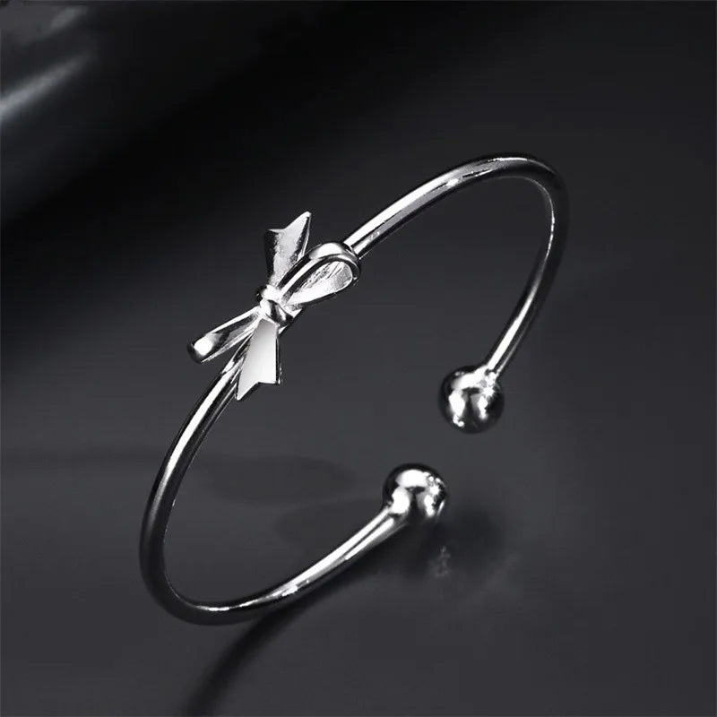 925 Silver Bow Cuff Bracelet Party Wedding Jewelry