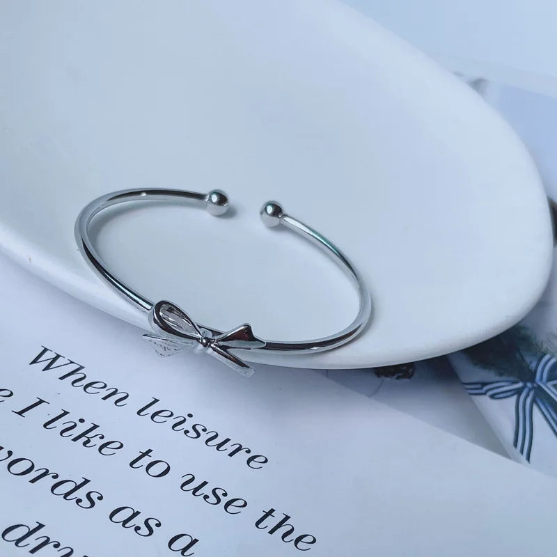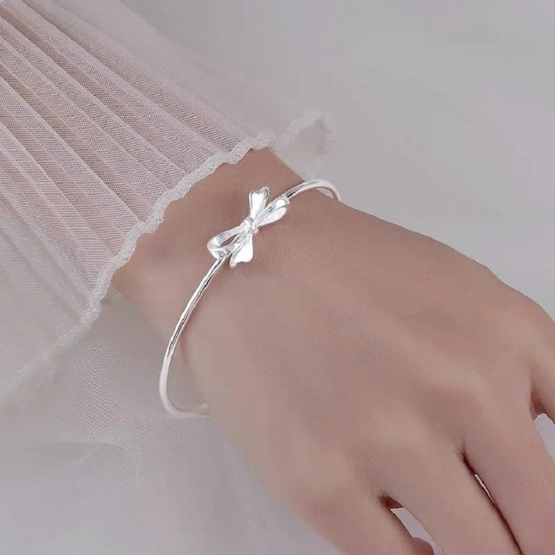Add a touch of elegance to your outfit with this stunning 925 sterling silver bow bracelet. Perfect for parties, weddings, and as a holiday gift for someone special.
