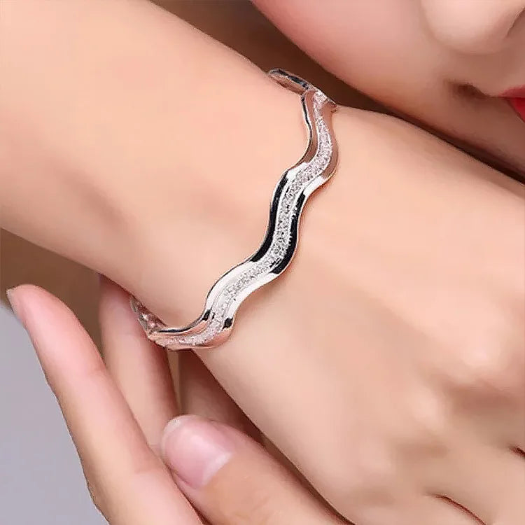 Add a touch of elegance to your outfit with these stunning frosted wavy bracelets. Made of high-quality 925 sterling silver, these bracelets are a perfect gift for any occasion.