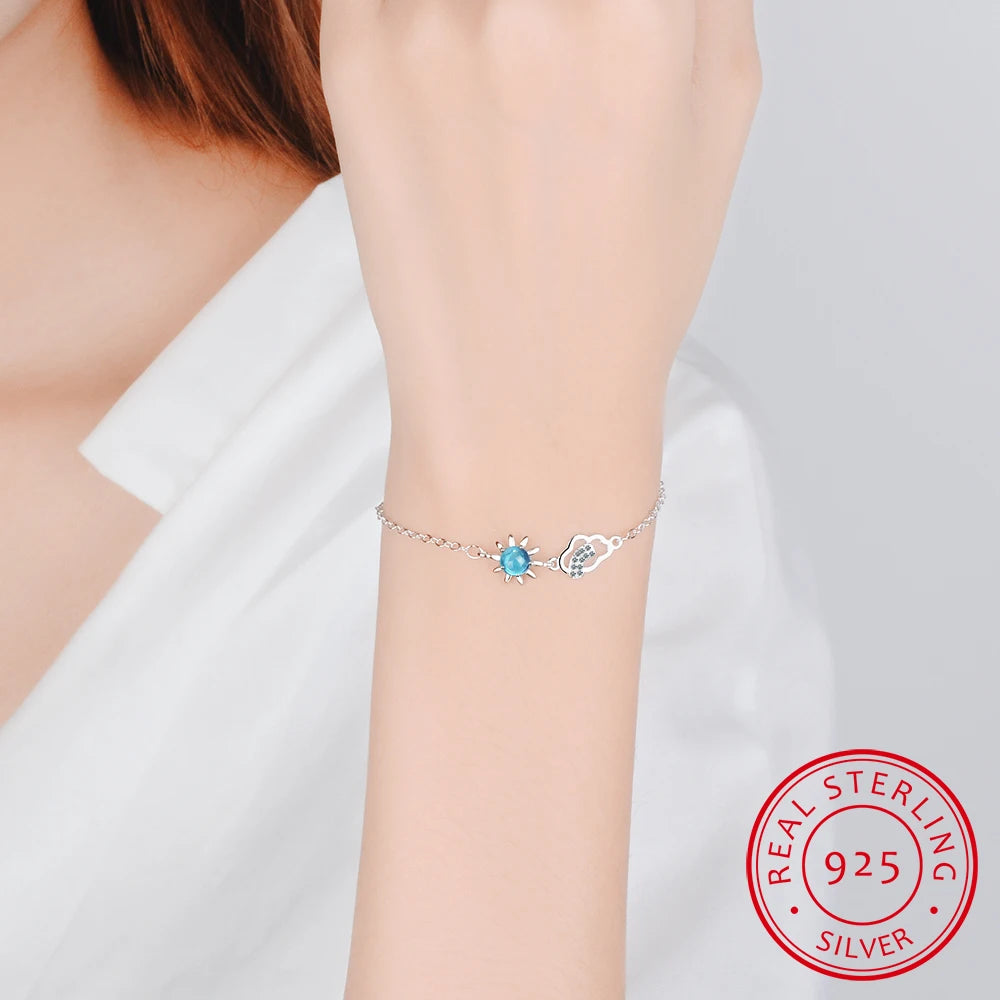 925 Silver Bracelets Women Sun Cloud Charms Bracelet