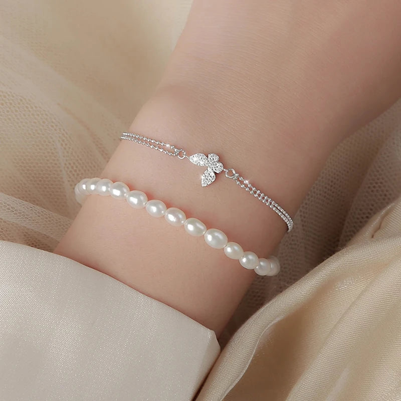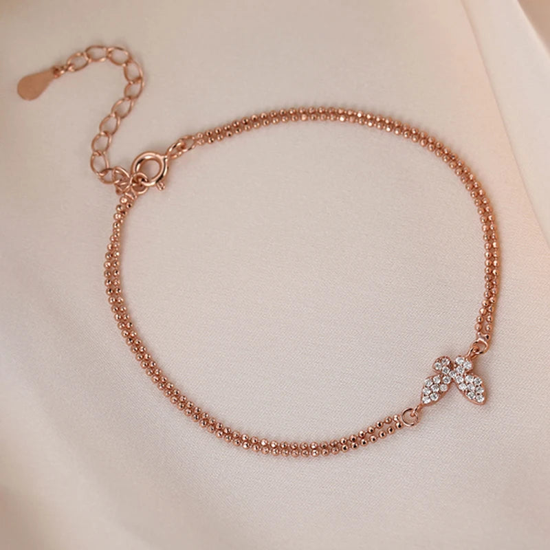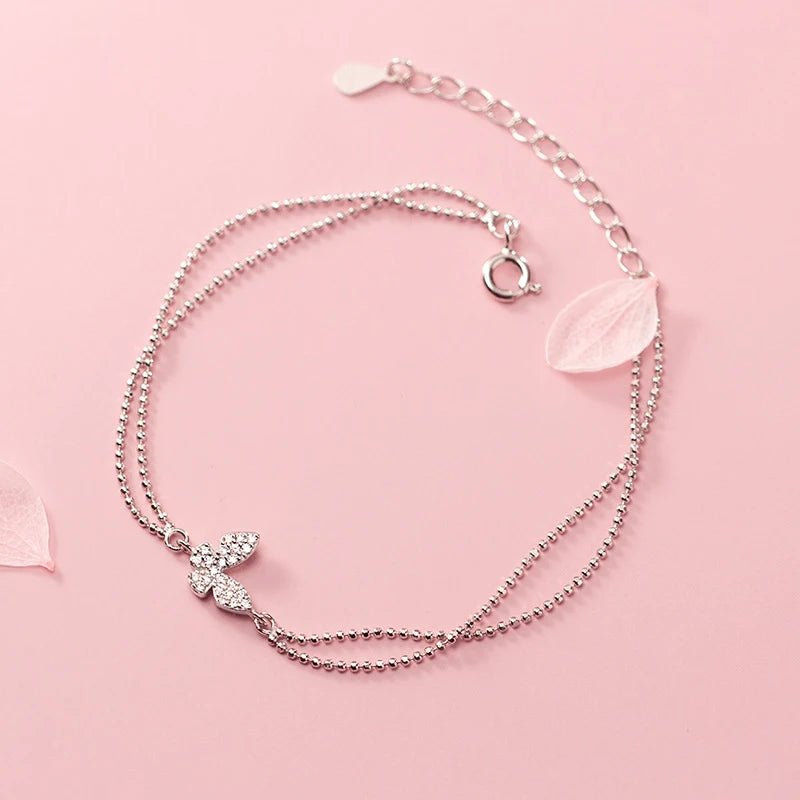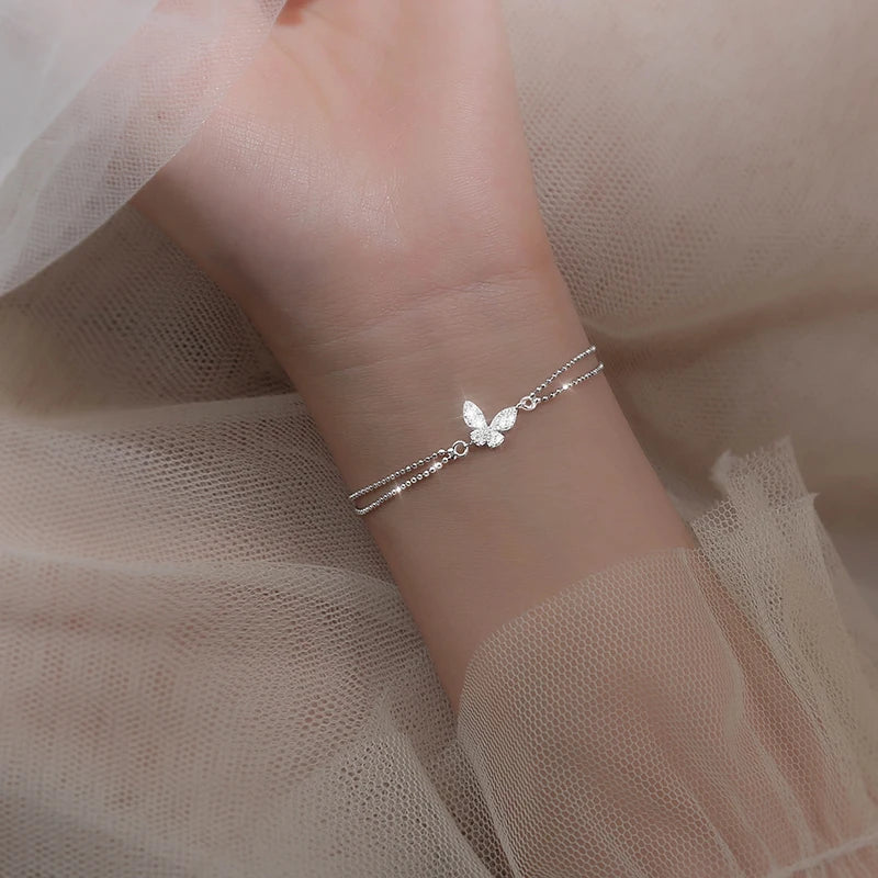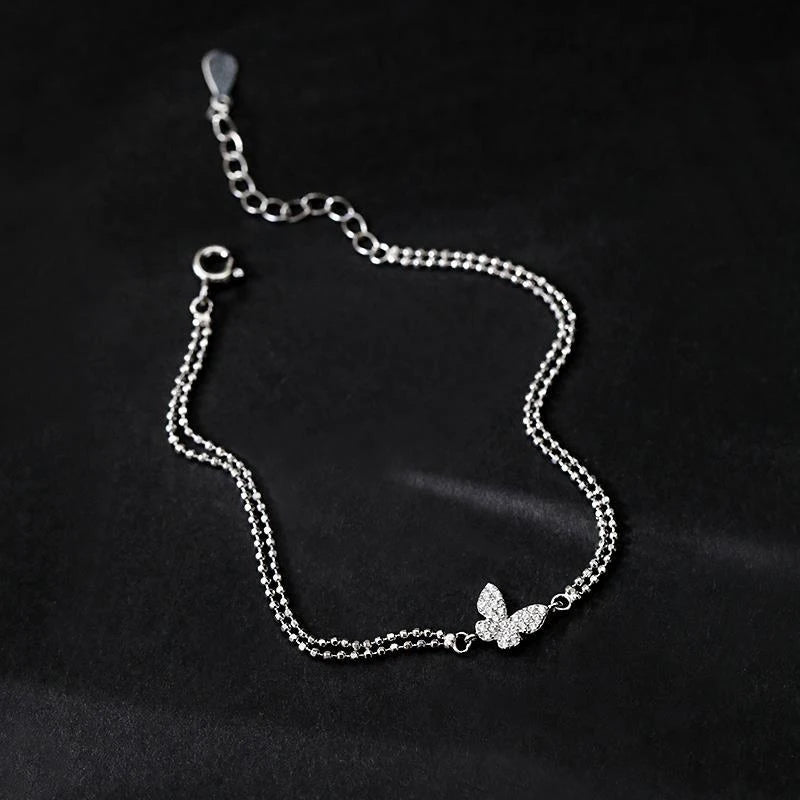 925 Silver Butterfly Bracelet Zircon Beads Ladies Student Gift