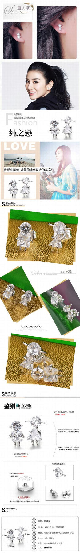 925 Silver Crystal Stud Earrings Girls Boys Light Wedding Party Jewelry