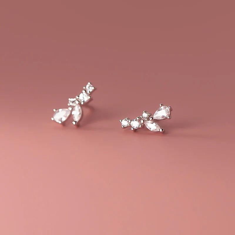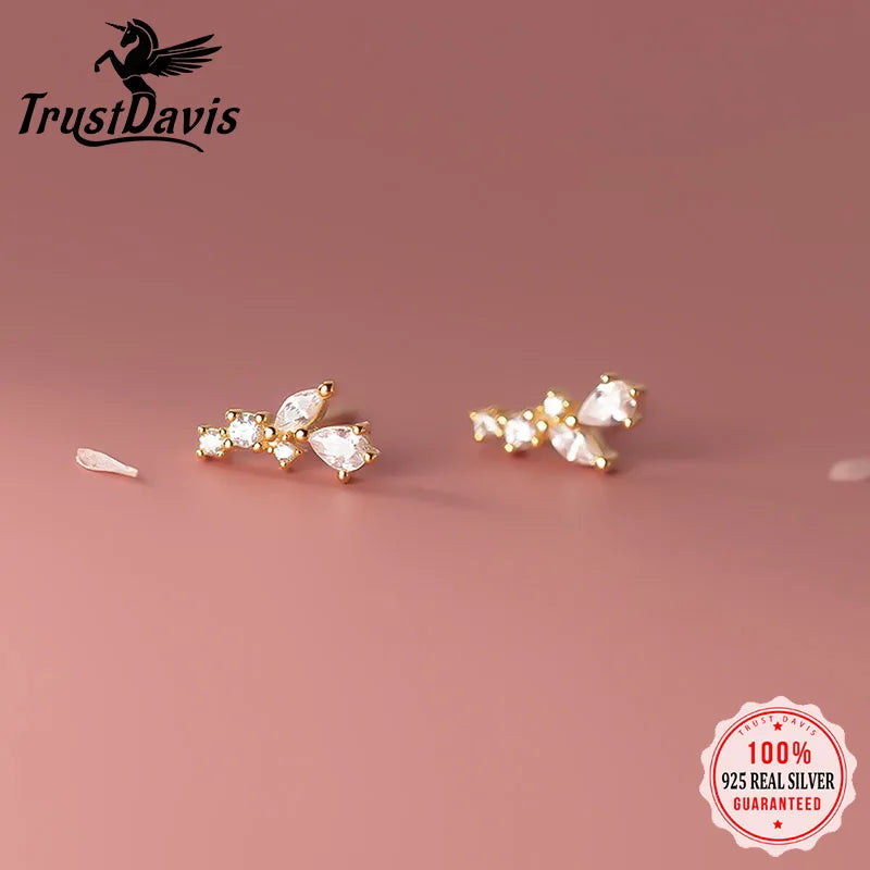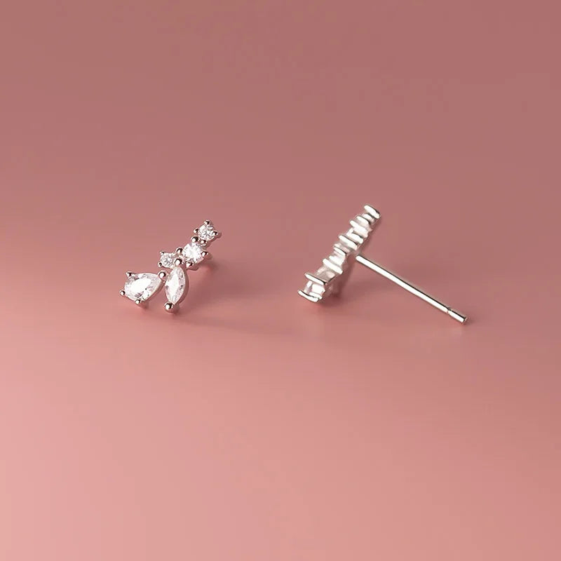 925 Silver CZ Stud Earrings Leaves Design for Teen Girls