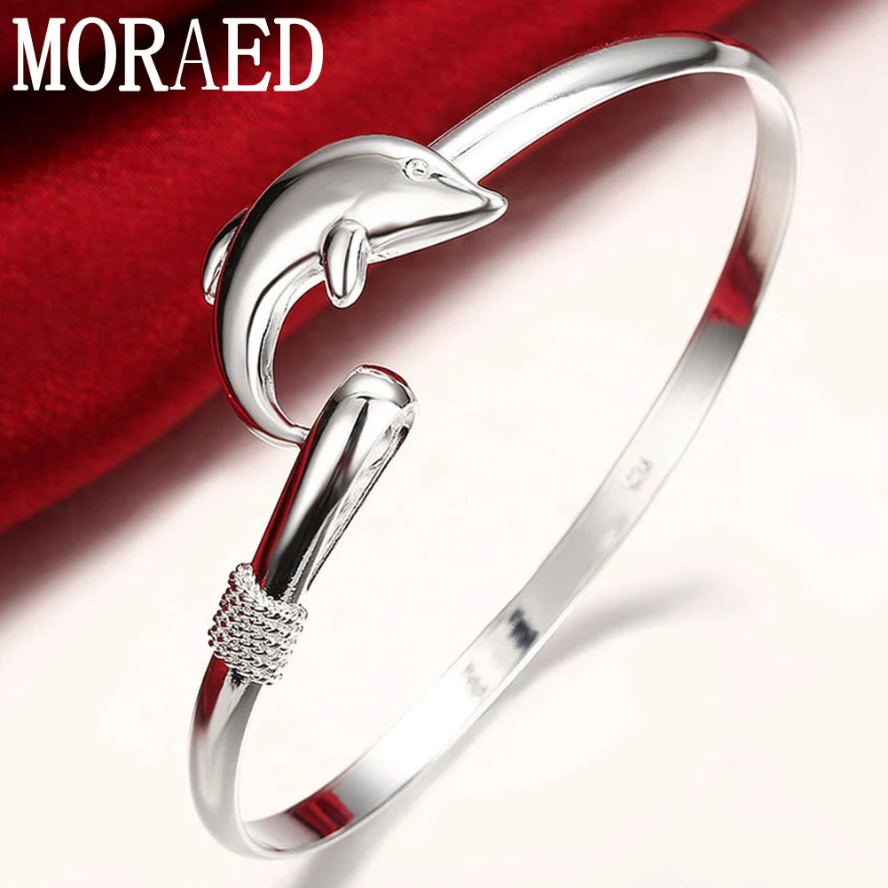 925 Silver Dolphin Bangle Bracelet Women Wedding Charm Jewelry