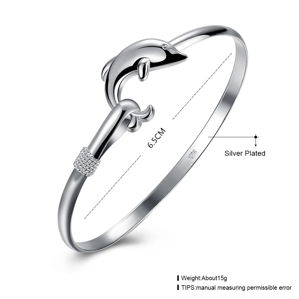 This dolphin bangle bracelet is crafted from high-quality 925 sterling silver. Perfect for weddings, engagements, parties, and everyday wear.