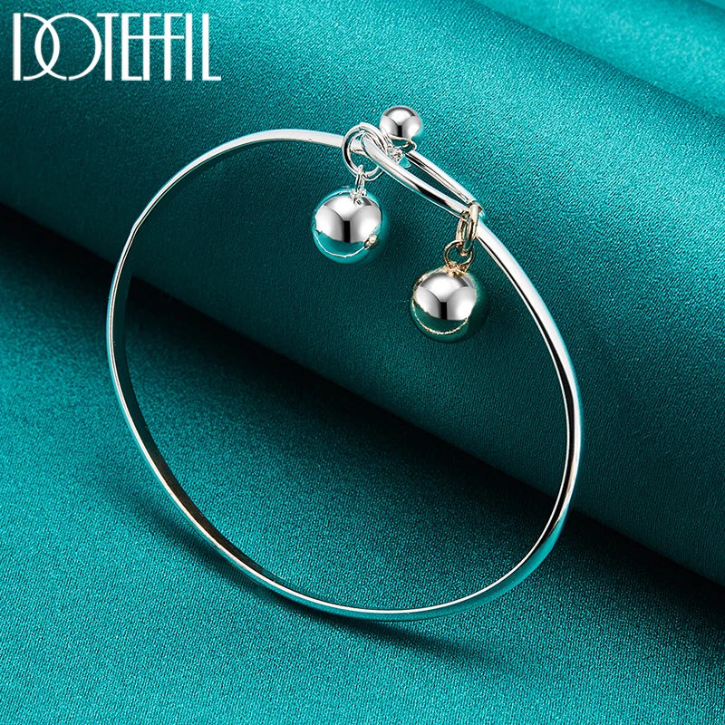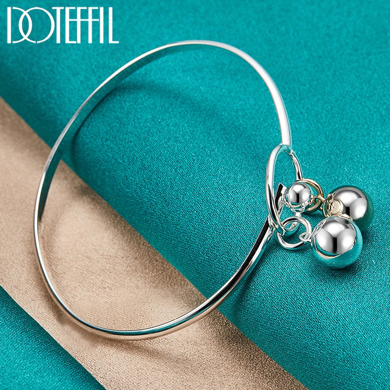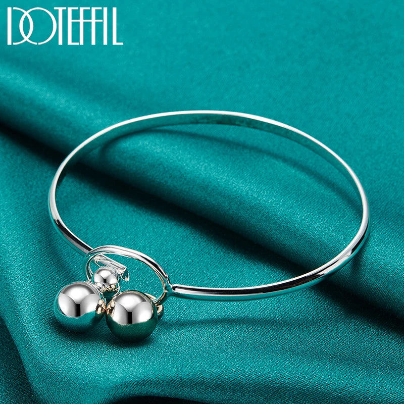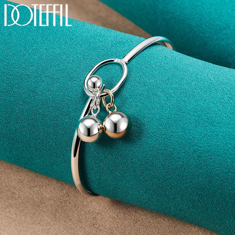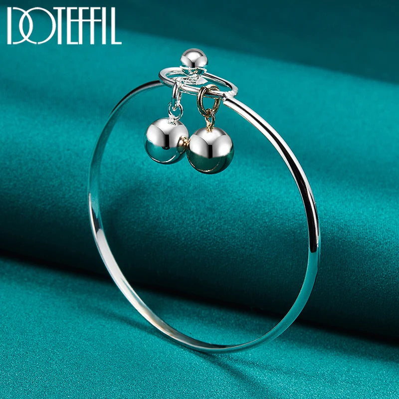 925 Silver Double Bead Bangle Bracelet Wedding Jewelry