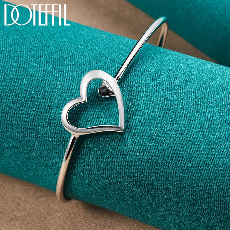 This stunning 925 sterling silver bracelet features a double heart design, perfect for weddings, engagements, and parties.