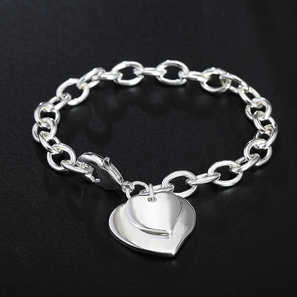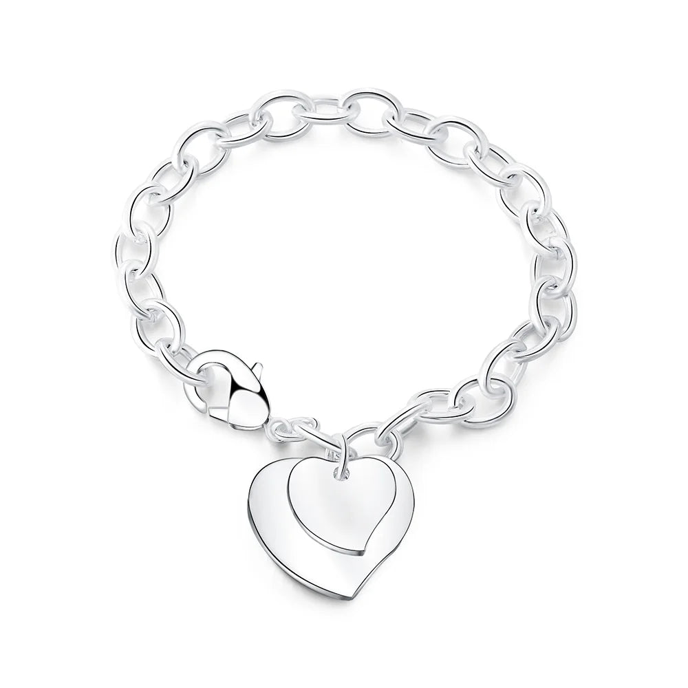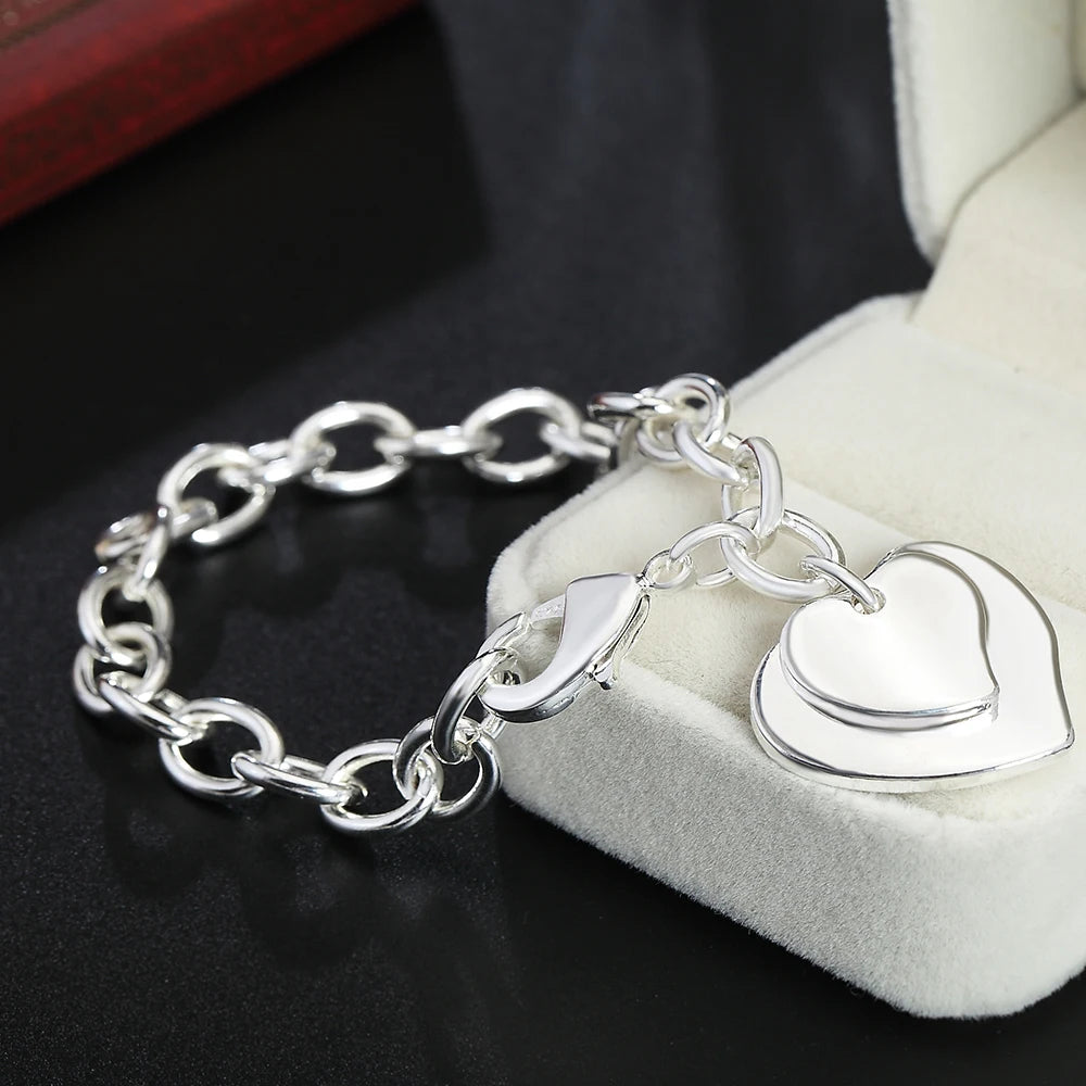 Show your love with this charming 925 sterling silver bracelet. It features two hearts entwined in a delicate design.