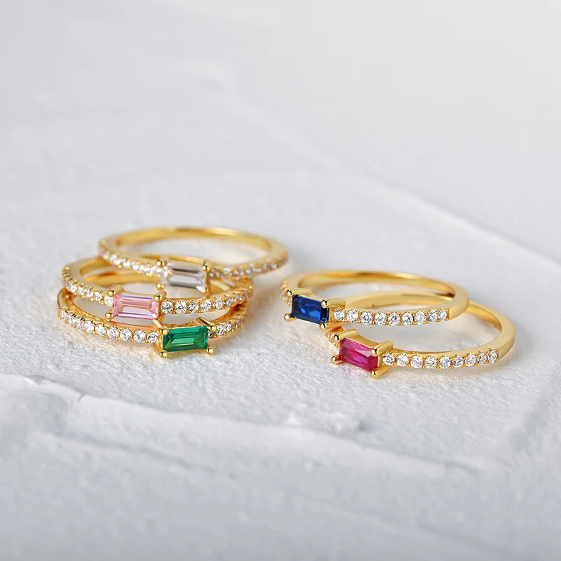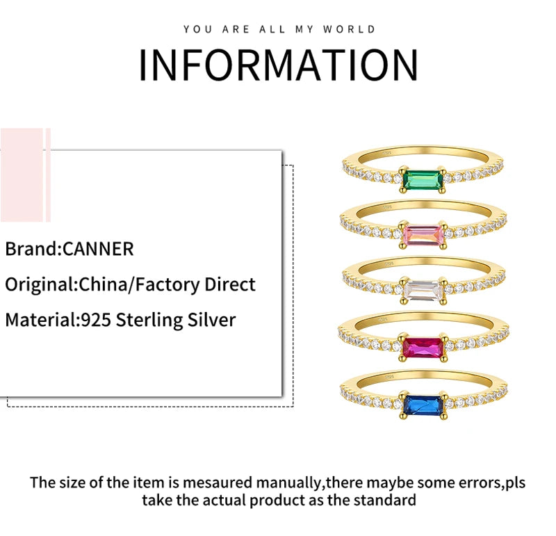 This stunning 925 sterling silver engagement ring features a colorful rectangular zircon stone, making it the perfect jewelry gift for your loved one's wedding.