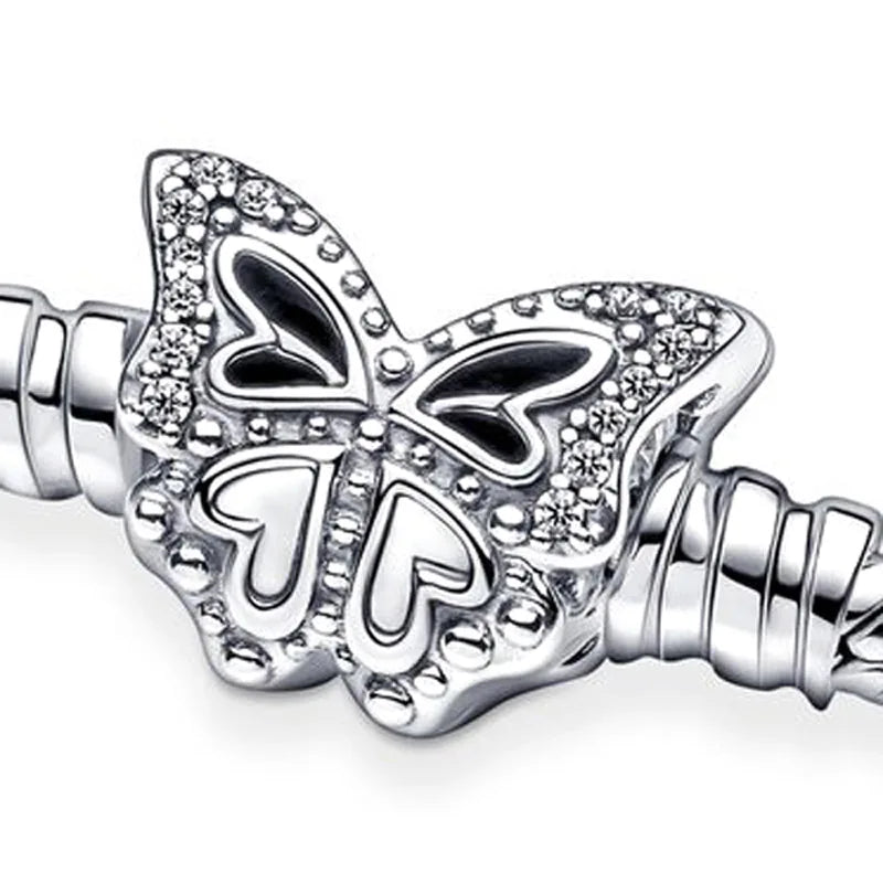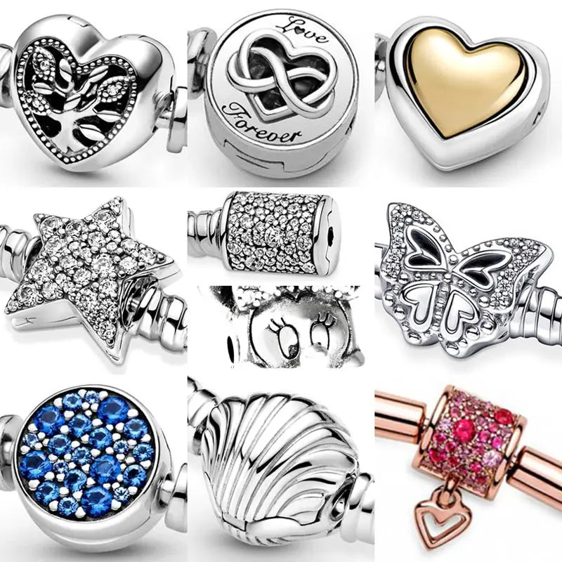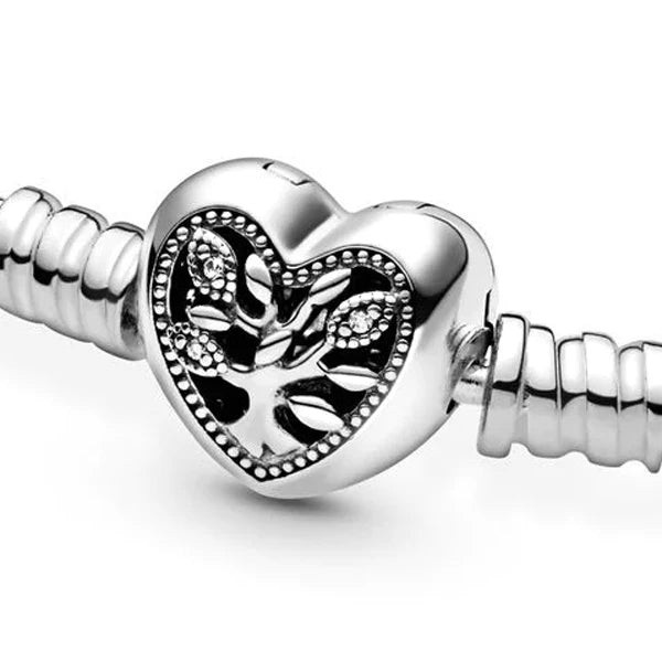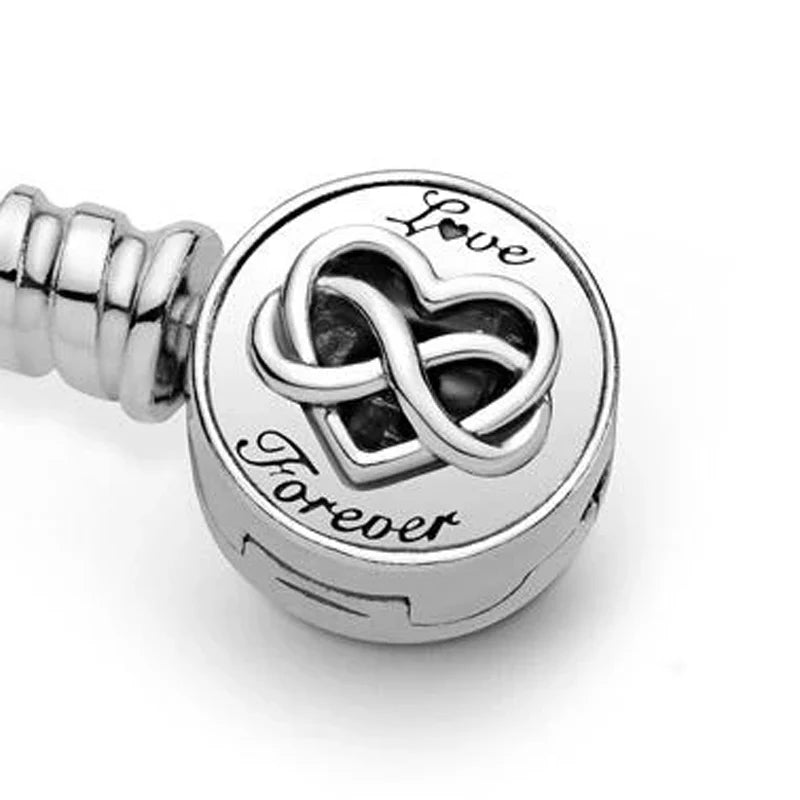 Add a touch of elegance to your bracelet with this 925 sterling silver charm featuring a family tree, heart, infinity symbol, star, and butterfly clasp design. Perfect for expressing love and connection.