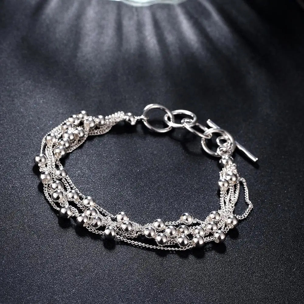 Gorgeous 925 sterling silver bracelet featuring a five-line tassel beads chain design. Perfect for weddings, parties, or as a special gift.