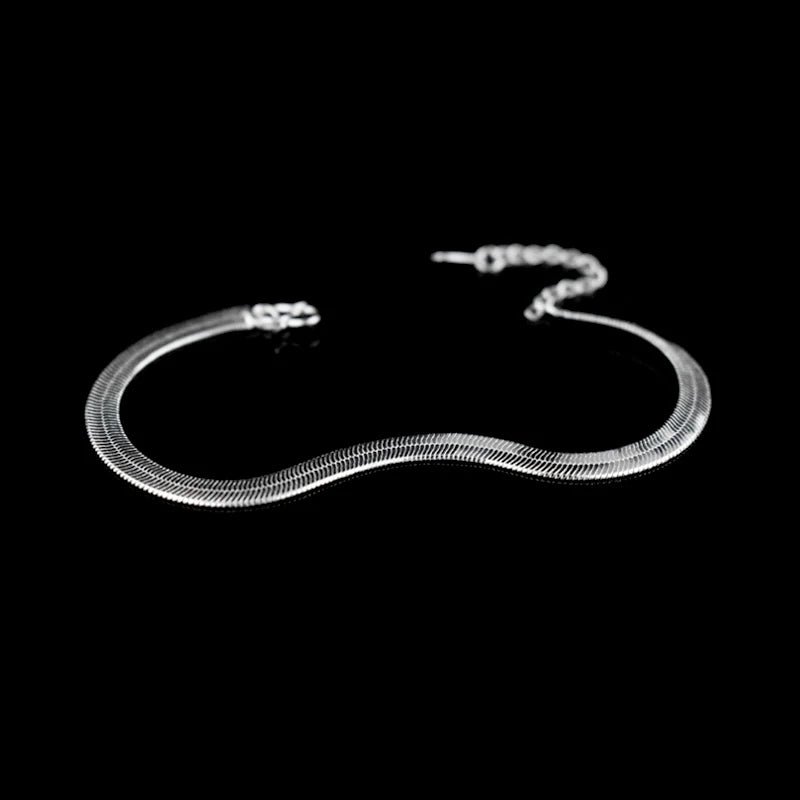 This flat snake chain bracelet is made of 925 sterling silver, perfect for a punk rock style. It's a unisex design that makes a great jewelry gift.