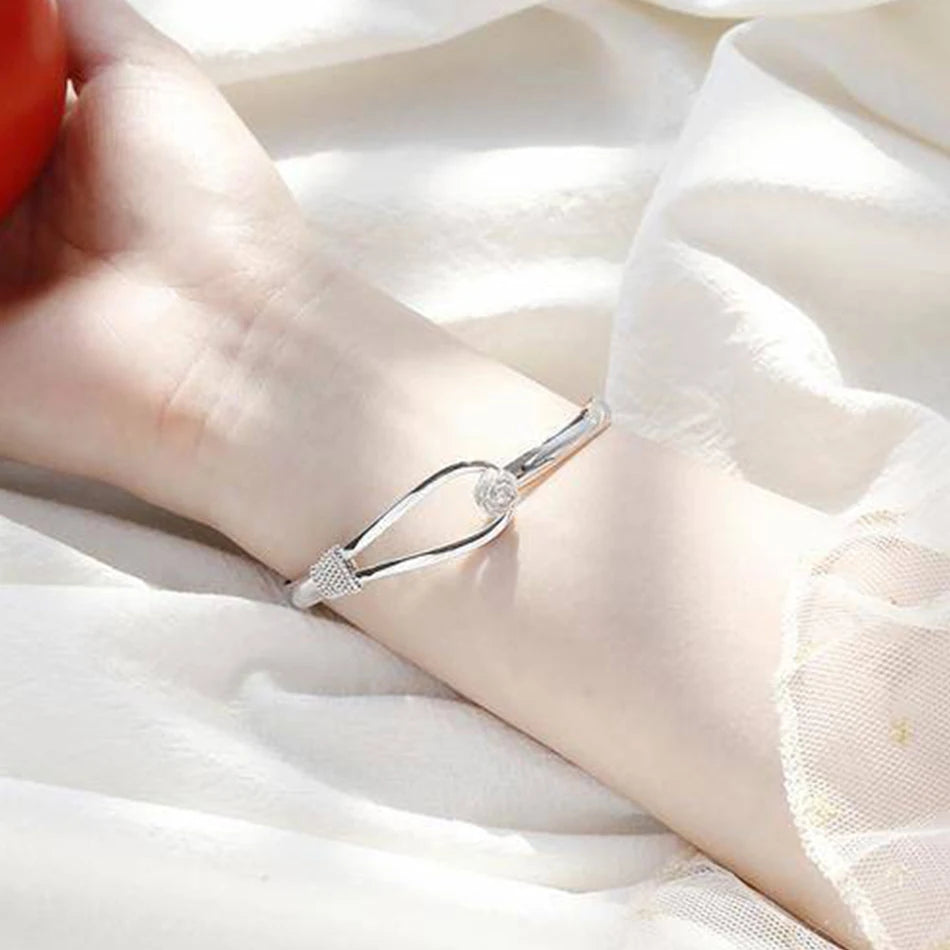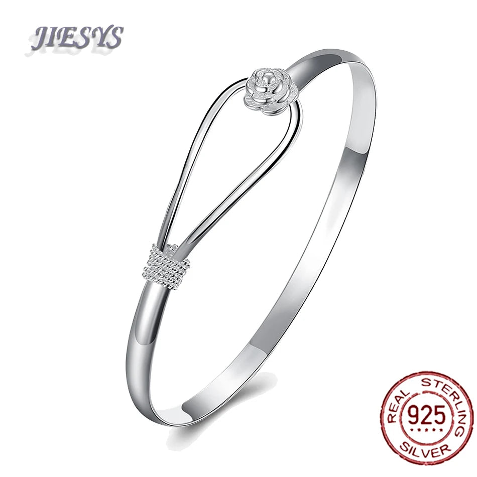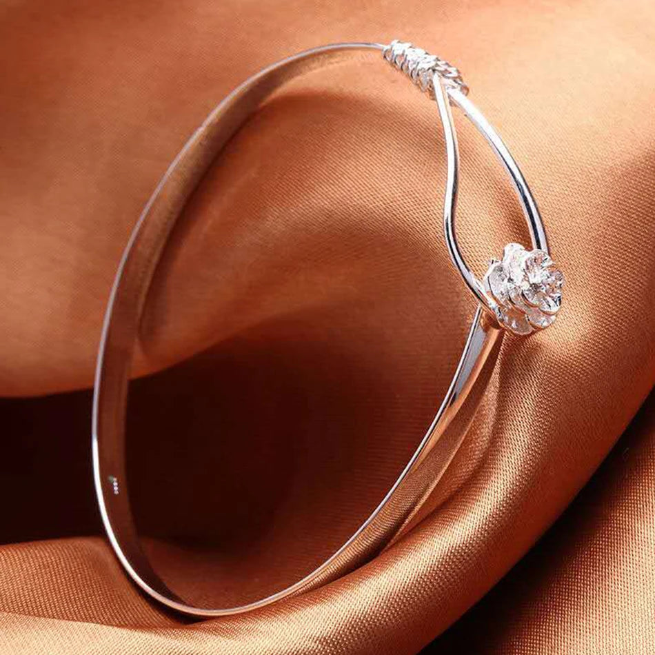 Elegantly designed 925 silver flower bangle bracelet that adds a touch of sophistication to any outfit.