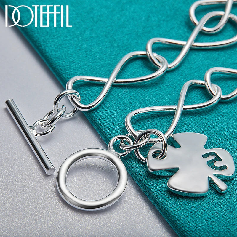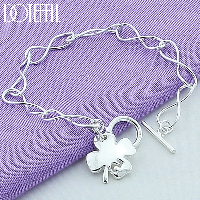 Add a touch of luck and elegance with this beautiful 925 sterling silver four-leaf clover bracelet chain. Perfect for weddings, engagements, and parties.