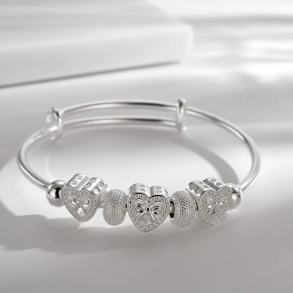 This elegant 925 sterling silver heart bangle bracelet is perfect for parties, weddings, or as a romantic gift for Christmas. It adds a touch of charm and sophistication to any outfit.