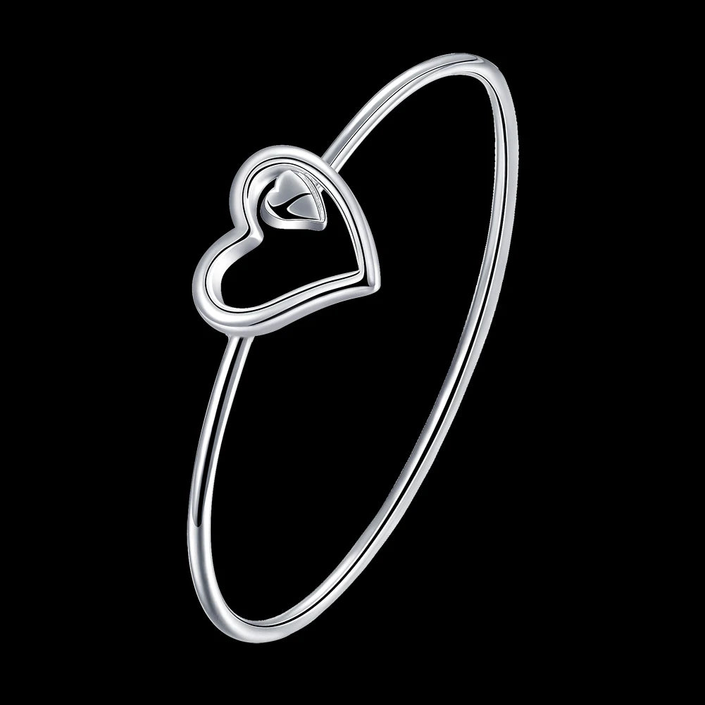 925 Silver Heart Bangles Bracelets for Women Party Wedding Jewelry