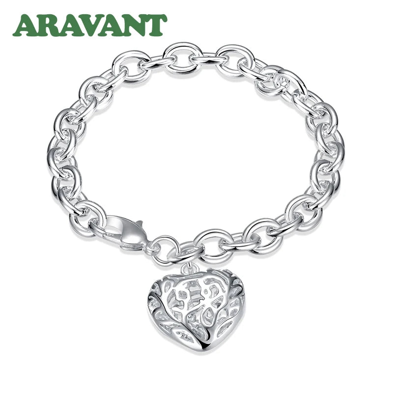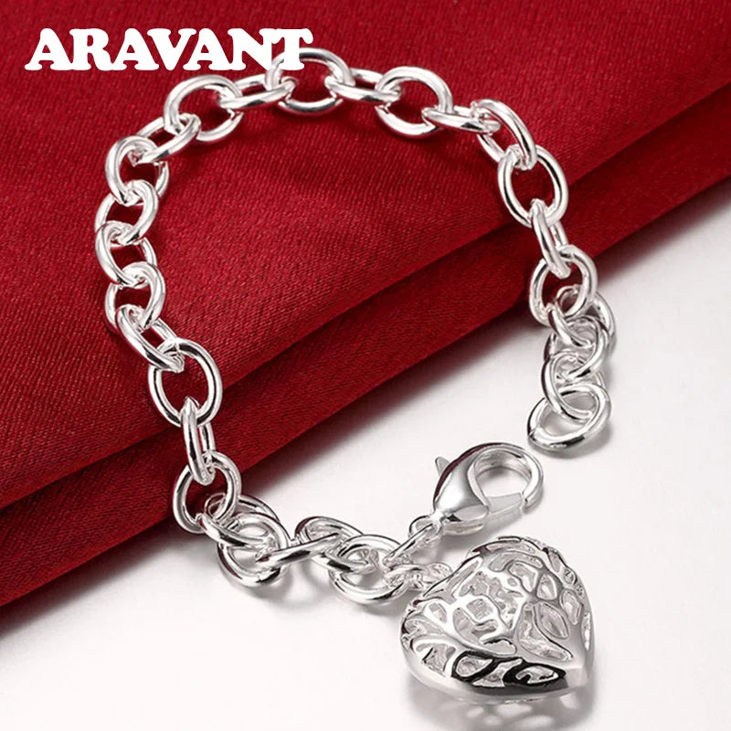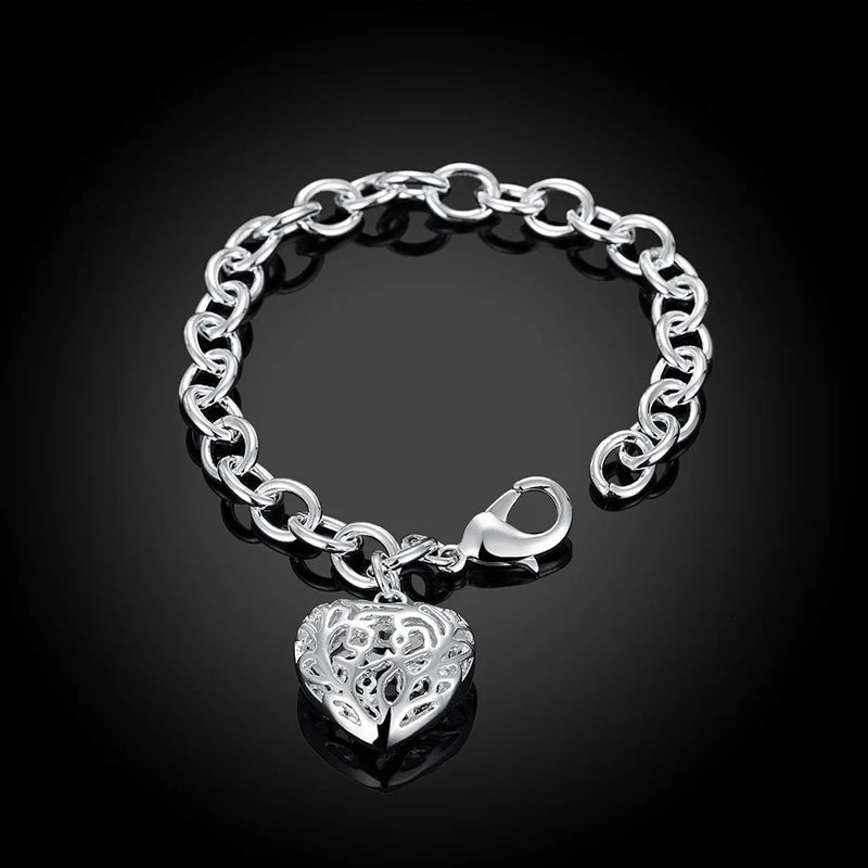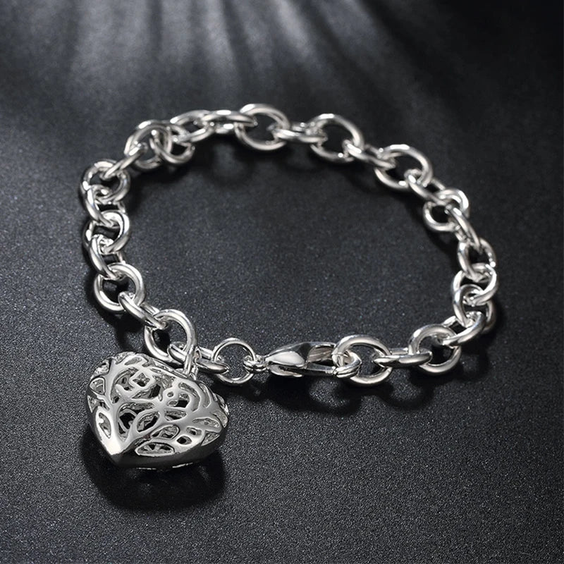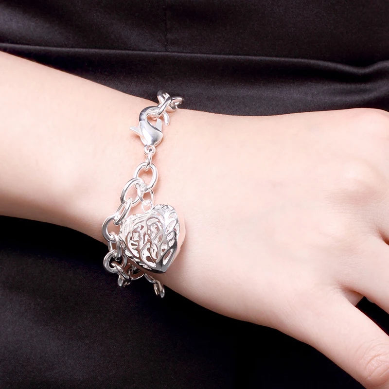 This stunning heart bracelet is crafted from 925 silver and features charming heart pendants. It is perfect for any stylish woman looking to add a touch of elegance to her outfit.