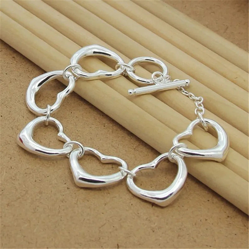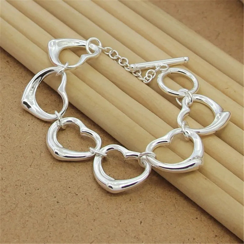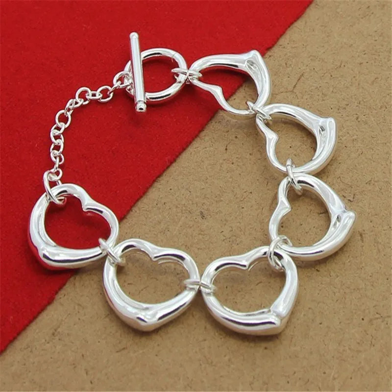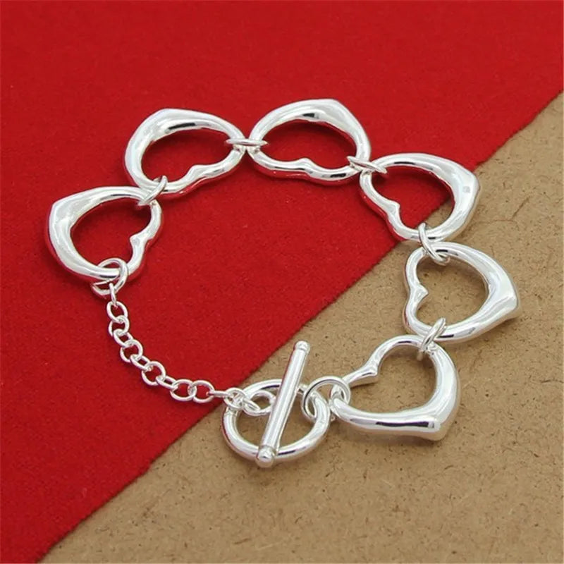 Elegant 925 sterling silver bracelet with a big heart chain design, perfect for parties and as a charming gift for women.
