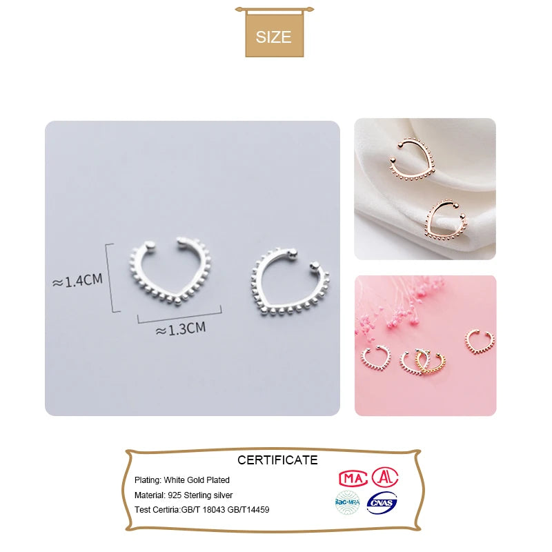 Add a touch of elegance with these versatile clip-on earrings. Made from 925 sterling silver, suitable for women, girls, and ladies without piercings.
