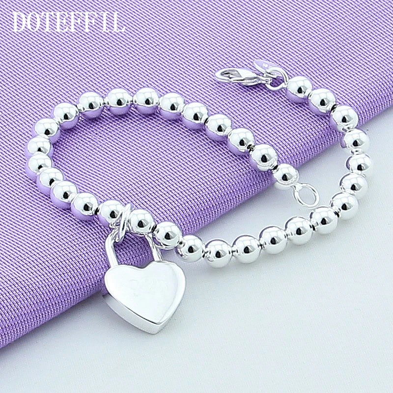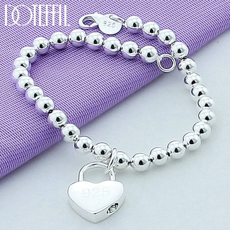 This beautiful bracelet is made of 925 sterling silver featuring heart lock design with 6mm beads chain. Perfect for women's jewelry collection and a great Christmas gift.