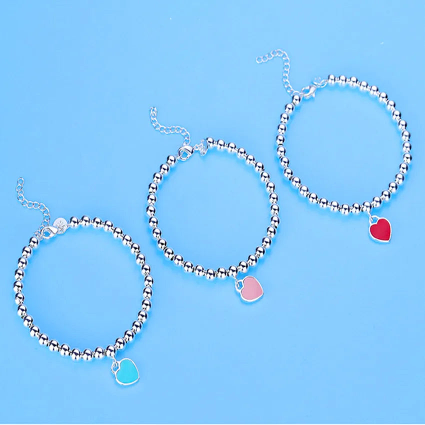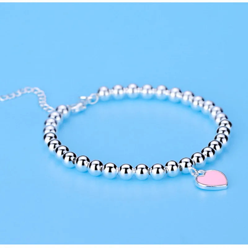 This stunning bracelet is made of 925 sterling silver and features a beads chain with a heart pendant. Perfect for parties, weddings, or everyday wear.