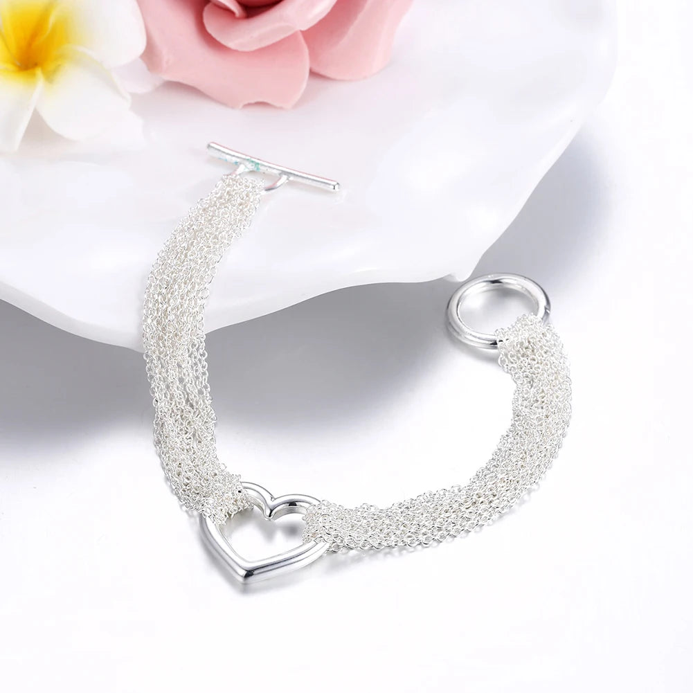 This 925 sterling silver bracelet features a heart and tassel design, making it the perfect accessory for weddings, parties, and Christmas. A top gift choice for women.
