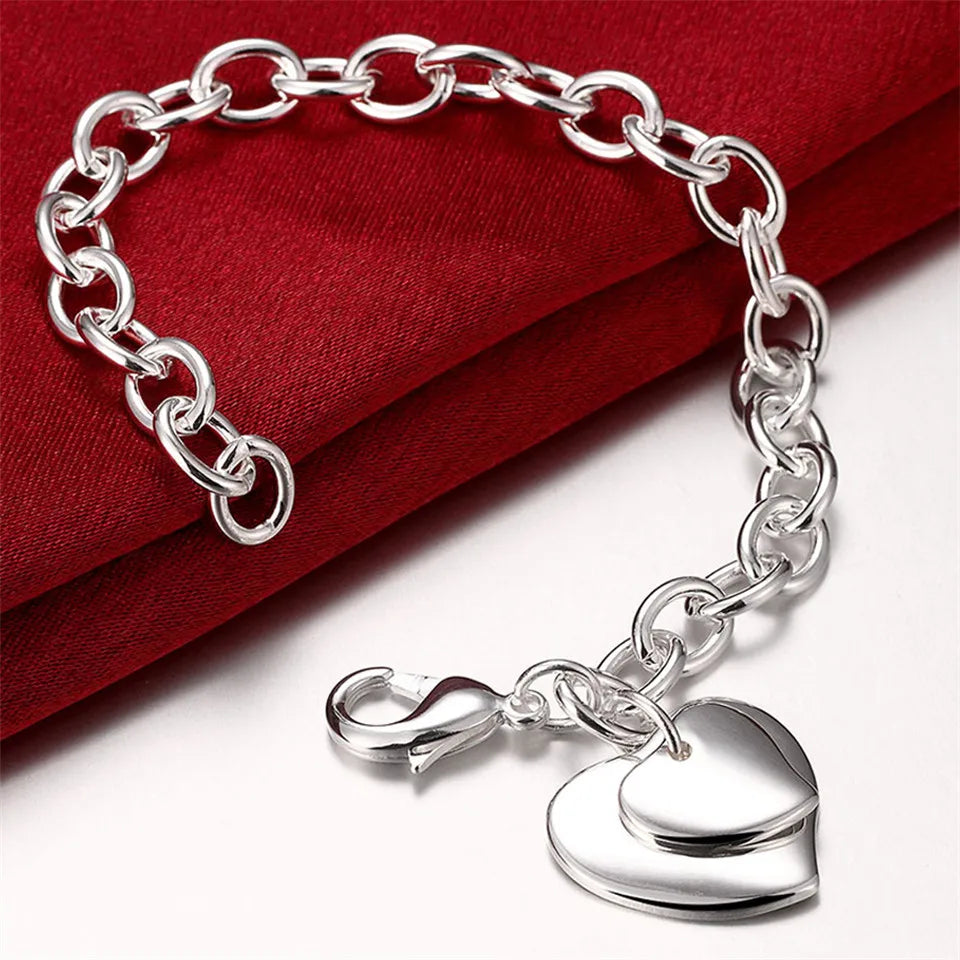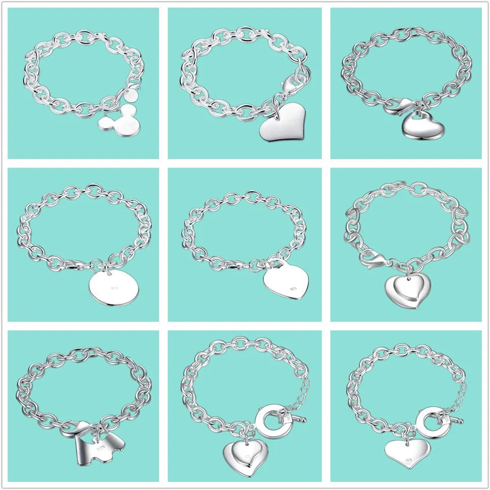This beautiful 925 sterling silver bracelet features a heart-shaped, round, or Mickey pendant, making it an ideal accessory for weddings, parties, or as a Christmas gift. The bracelet is designed to add charm to any outfit.