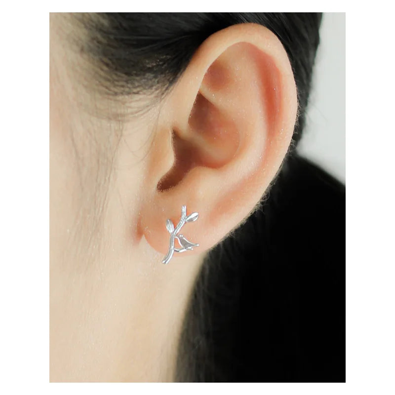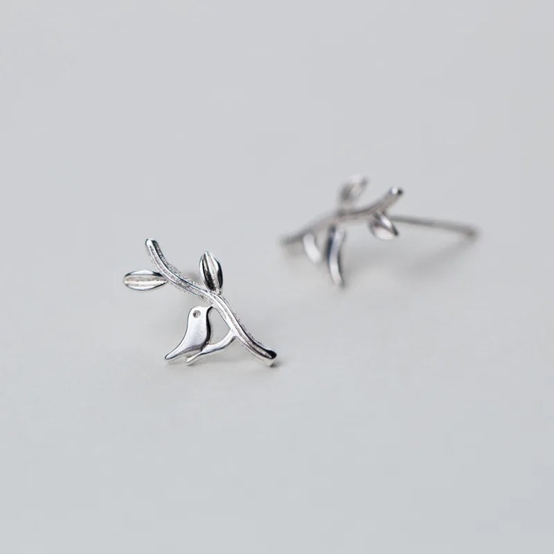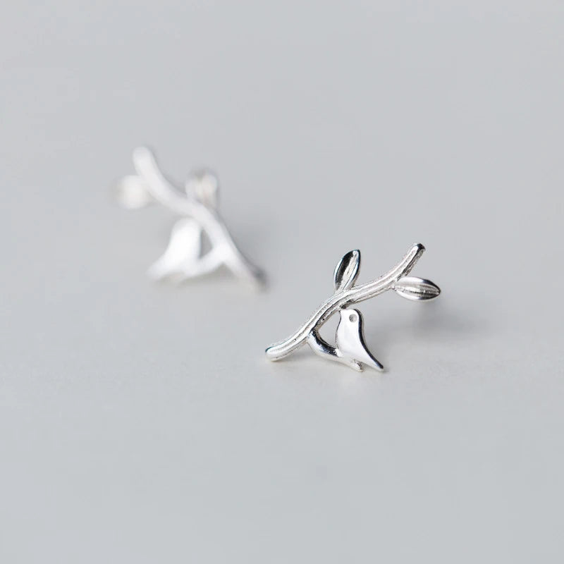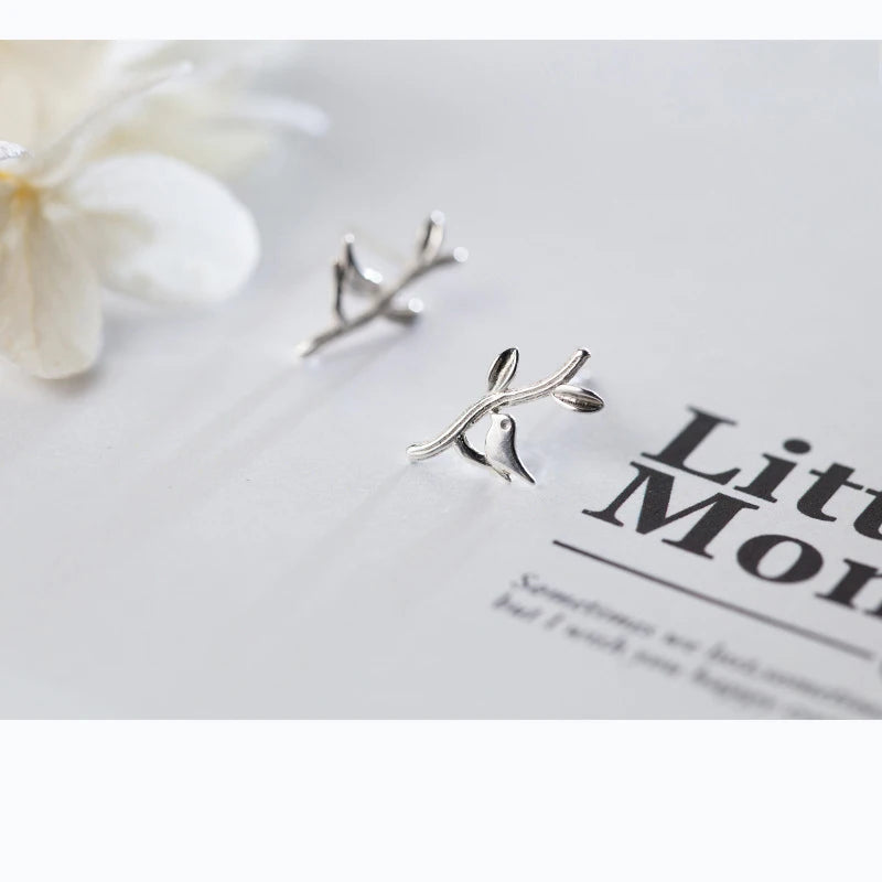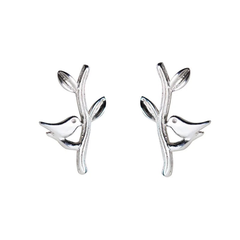 Make your daughter happy with these beautiful sterling silver bird stud earrings featuring delicate leaves. Perfect gift for her birthday or any special occasion.