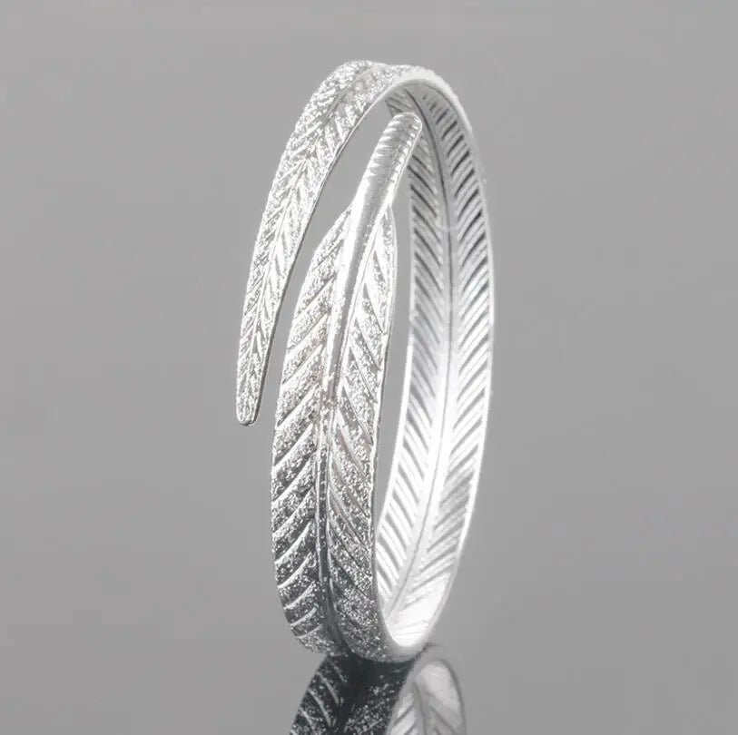 Elegant and unique 925 sterling silver leaf bangles. Made of high-quality materials, these bracelets are perfect for any occasion.