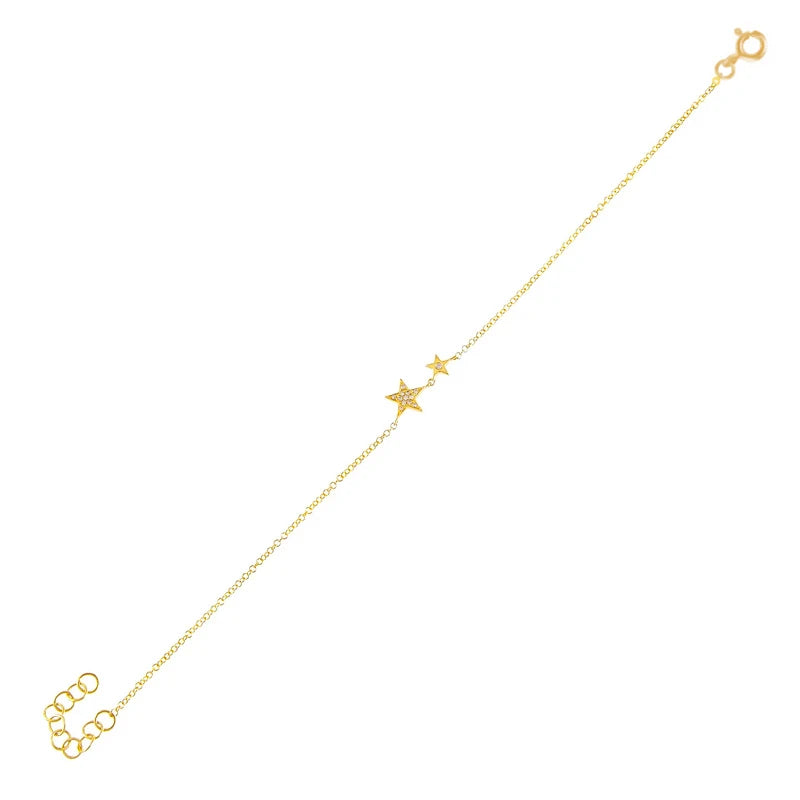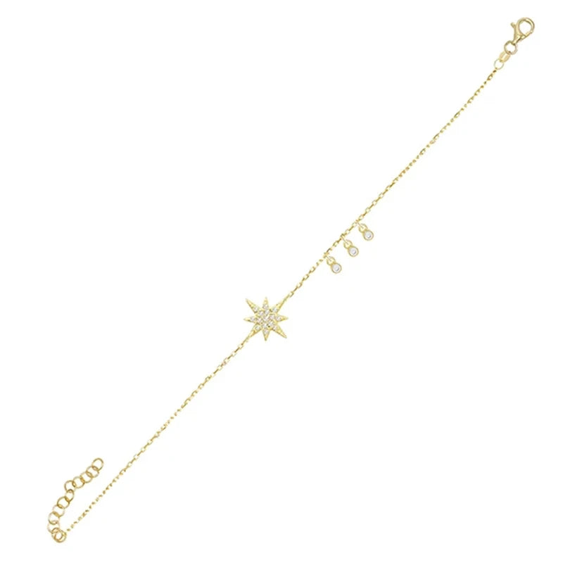 This stunning bracelet features a lightning star design crafted in 925 silver with an 18k chain. It is the perfect gift for your girlfriend or any woman who loves elegant jewelry. The bracelet is adorned with sparkling CZ stones for added charm and elegance.