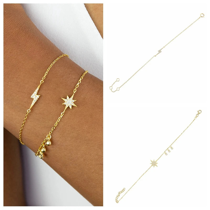 925 Silver Lightning Star Bracelet 18k Chain for Girlfriend Gift Women Jewelry